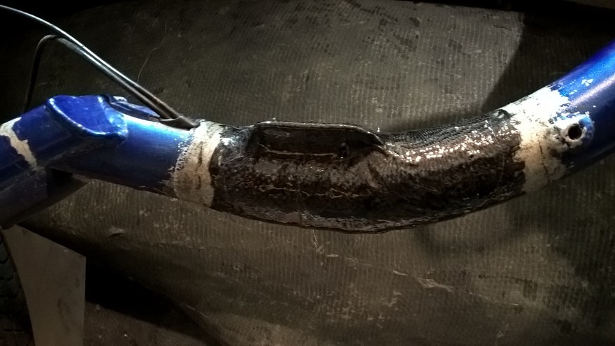 Kyse ei ole hiilikuidun väsymisestä alkuunkaan vaan delaminoitumisesta. Edellinen kuidutus oli irronnut alumiinista koska se ei ympäröinyt runkoa kokonaan juuri alumiinnin halkeaman kohdalta. Nyt se laitettiin penkin tuen päältä ympäröiden rungon halkeaman kohdalta täysin.