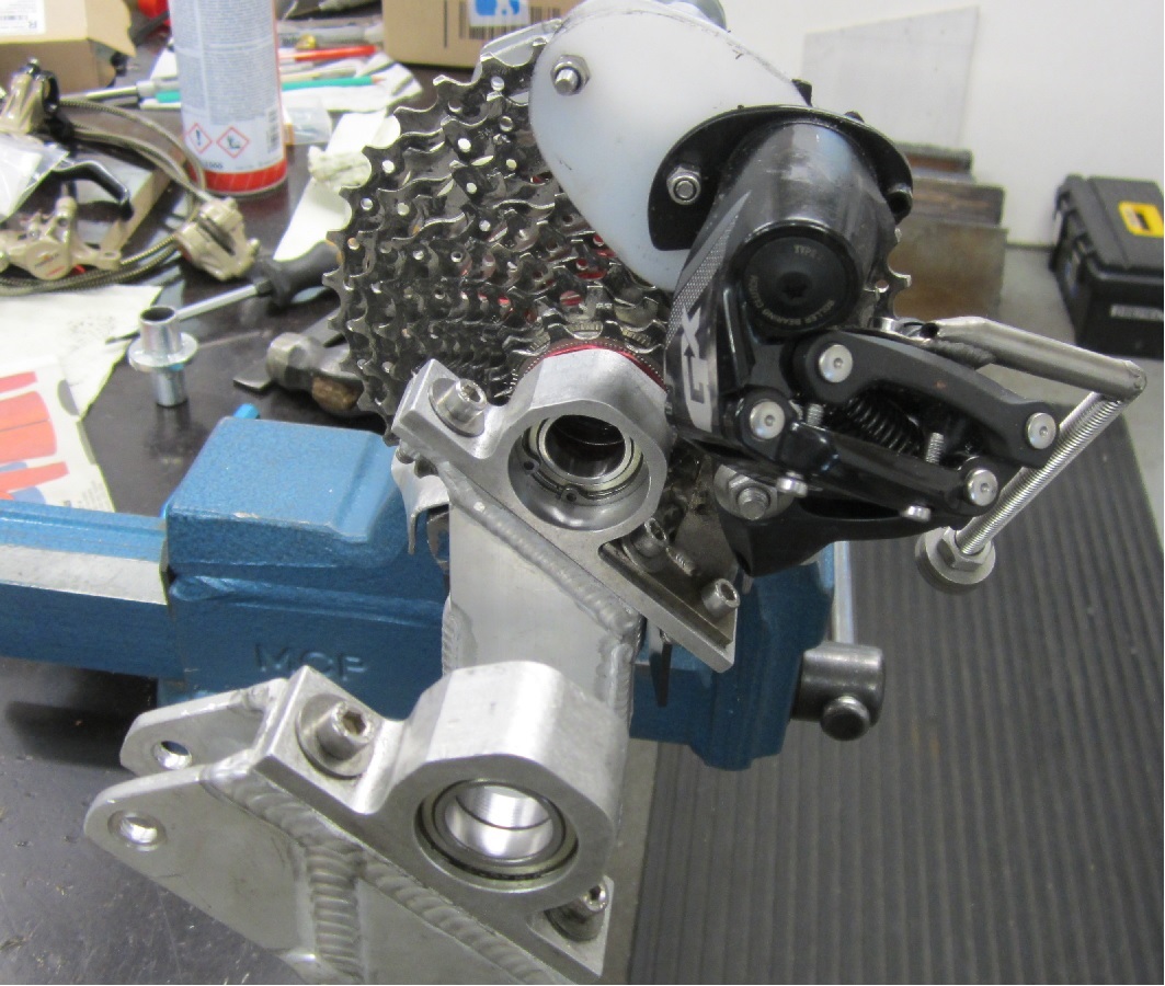 Holkin läpi porattiin 4 kpl 5 mm reikiä, joiden kohdalta saatiin hitsattua "pisteet" kiinni akseliin pelkän holkin pään hitsaamisen lisäksi. Valmistaja käyttää vastaavaa tapaa itsekin tuoreempien QW-yksilöiden akseleissa.