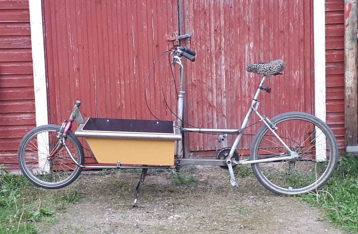 Tai jos ei muokkaa haarukkaa pitää ohjauskulmaa loiventaa pienellä pyörällä. Mullahan on vielä lastenpyörän runko tallessa, pitänee mitata sen ohjauskulma referenssiksi.