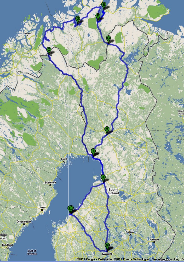 Selvisihän homma omin avuinkin. Perusongelma oli se, että, kun tekee yli 2000 km:n matkakartan Google Mapsin avulla, tulee tiedostosta niin suuri, että tallentaminen vie suhteettoman kauan aikaa ja mukaan tulee tekstitetyt reittiohjeet.