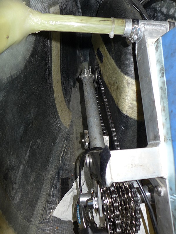 Meikäläinen vuorostaan tutustui tuohon Markun Mangon takapäähän. Ilmeisesti Jorin ensimmäisen viestin jälkeen takimmaista ketjua oli jatkettu, kun oli nyt aika löysällä. Ketjunkiristäjän bongasin, muttei se kovin herkästi liikkunut, tai sitten oli liikealueensa rajalla. En arvannut alkaa purkaa, kun tila oli ahdas eikä kunnolla nähnyt, olisi voinut jäädä kokoamatta.