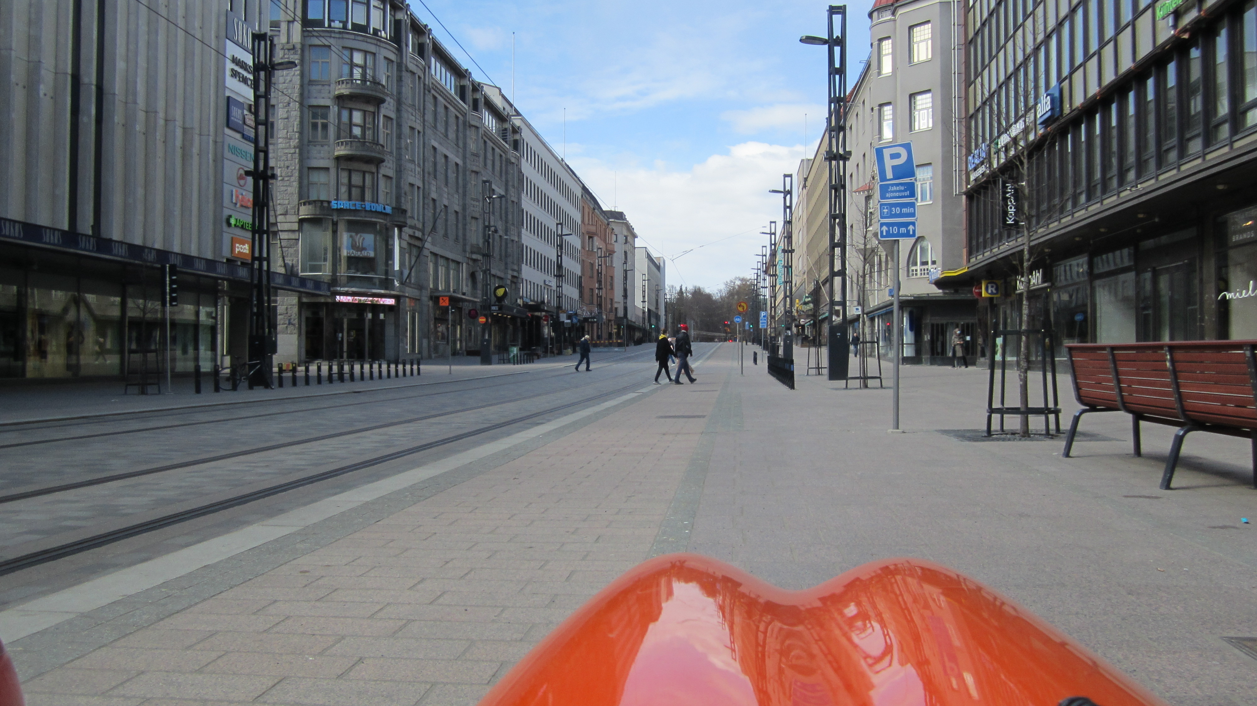 Tuossa Hämeenkadulla on kielletty polkupyöräilemästä. Ajaako siinä koko kadulla enää muita kuin ne kaksi raitiovaunua? Saako siinä ajaa edes autolla enää? Miten kinnerillä selviää Hämeenkadun pyöräteillä? Onko hyvä ja tasainen asfaltti? Eiväthän jalankulkijat hypi pyöräteille?