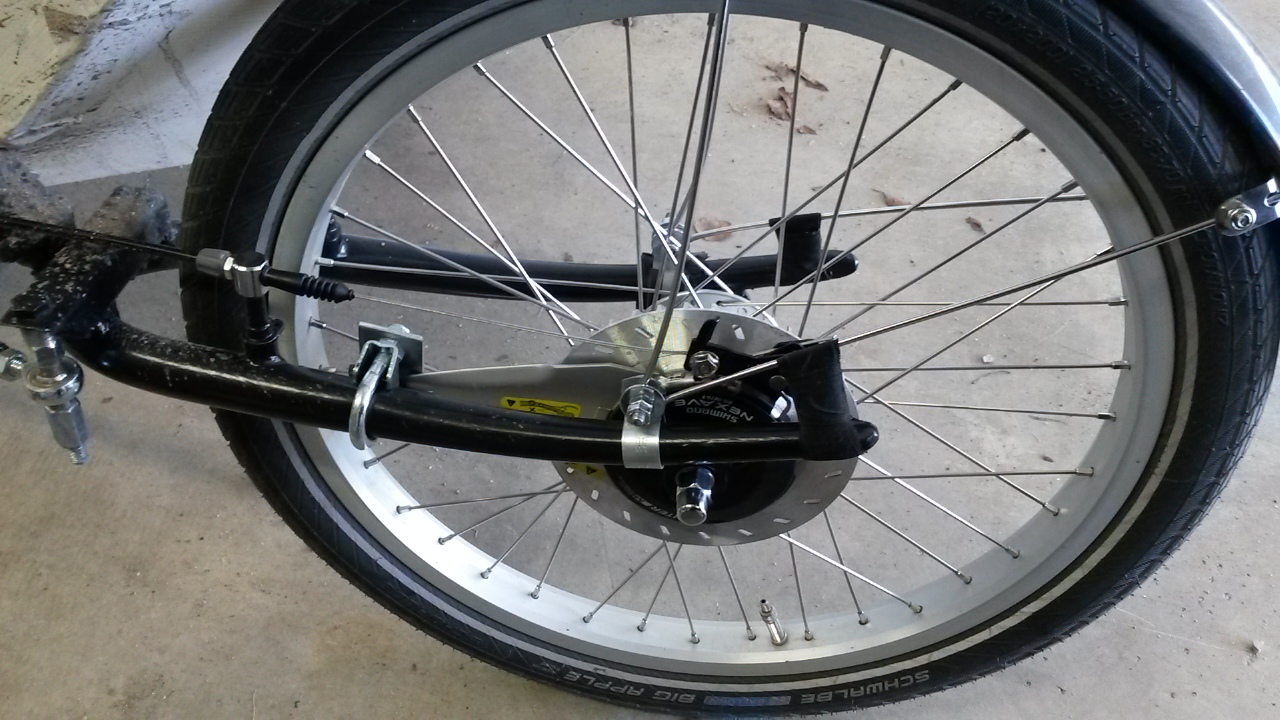 Oiskohan Mahe ehdottanut joskus kitkavaihtajan käyttämistä kolmipyörän pysäköintijarruna. Päätin kokeilla ja toimii, kitkavaihtaja jaksaa pitää jarrun päällä.