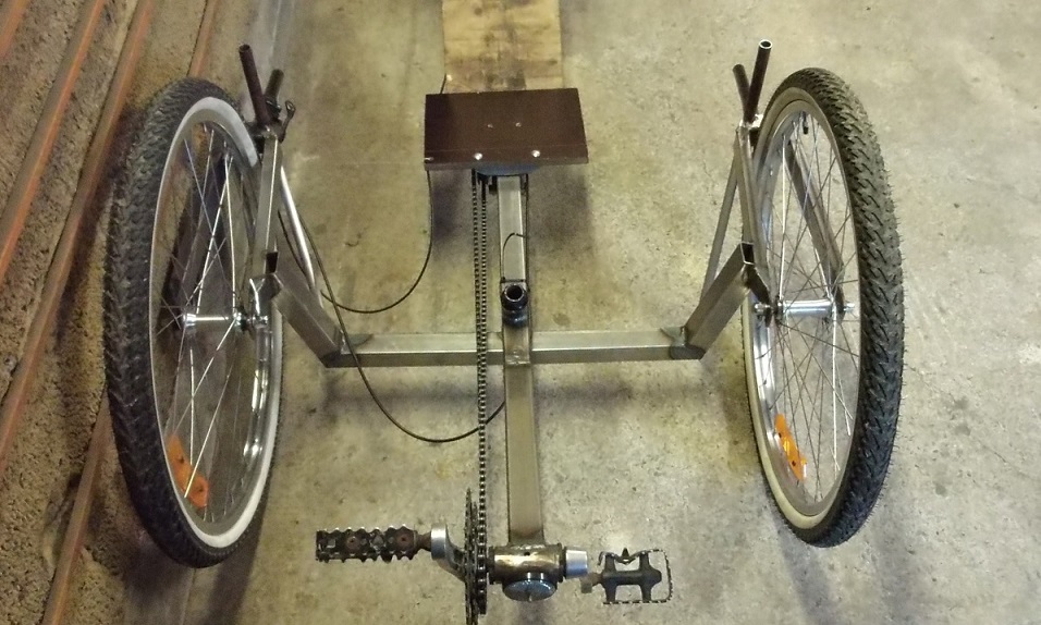 Nuo etupyörien haarukat asettelin tähtäämään tolleen taivaalle, mahtuu paremmin jalat ohjaamoon.