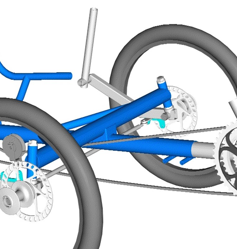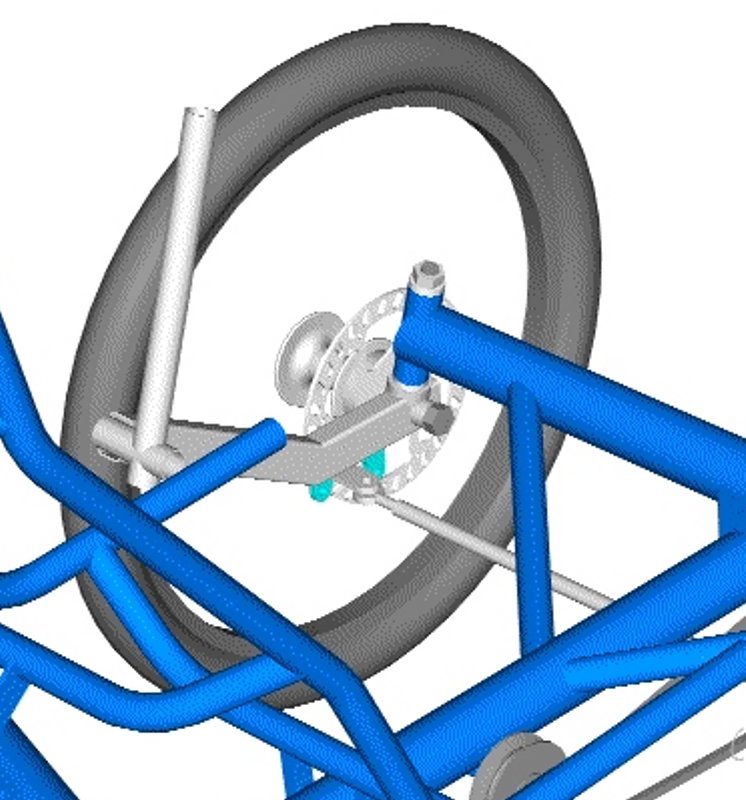 Asiasta en mitään ymmärrä, mutta kuvasin vähän Alku-triken rakennetta. Siinä on varmaan tehty asia niin yksinkertaisesti kuin sen vain voi tehdä. Ohjausakseli on laitettu suoraan runkoon oikeaan kulmaan. Levyjarrukiinnike on hitsattu suoraan ohjausakseliin erillisenä rakenteena, samoin raidetangon pään kiinnitys.