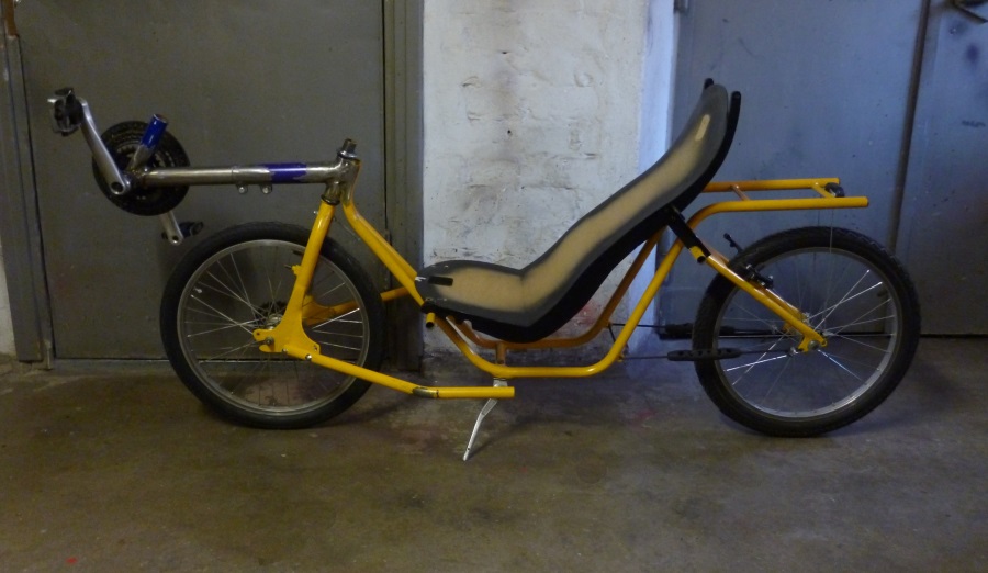 (kun on niin paljon mukavampia nojakkeja olemassa) olen muuttanut sen etuosan tavalliseksi taittopyörillä tapahtuvaksi etuvetoiseksi: