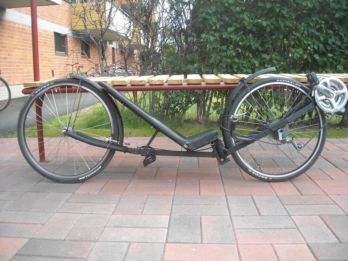 Sillä on lähinnä haettu pienempää jättöä ja rakentamisen helppoutta, lähinnä sellainen koeluontoinen idea ja pitää myös muistaa, että olin aika noviisi vielä pyörän teon alkuvaiheessa. En tosin vieläkään ole mikään mestari, mutta silloin tuo vaikutta ihan hyvältä ja helposti toteutettavalta ratkaisulta, enkä ole sitä toistaiseksi kokenut epäonnistuneeksi. Käsitykseni mukaan onnistuin saamaan sillä jättöä hieman pienemmäksi.
