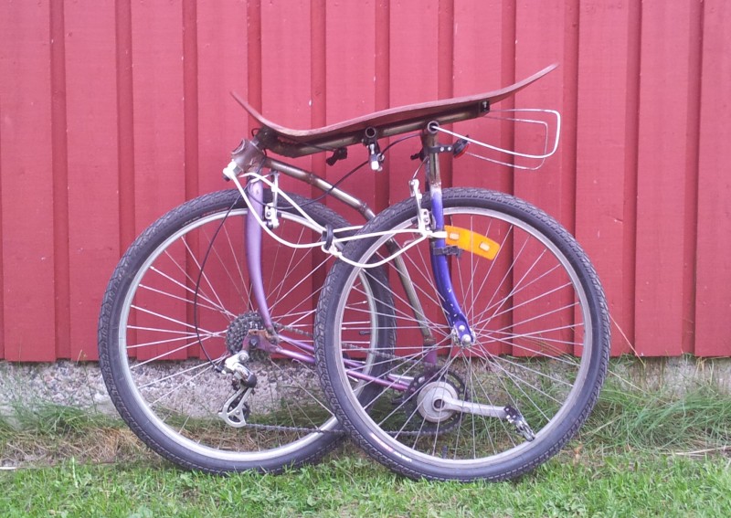 Niukasti mitoitettuna yritin tehdäkin eli voi pitää onnistuneena. Joustaa kaikkialta, muttei runkoa lukuun ottamatta niin että asiaan viitsisi puuttua. Rungon ajattelin korvata ohjausnivelestä jarrukahvoille 38 millisellä tai jos viitseliäisyyttä on takahaarukan nivelelle asti.
