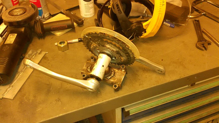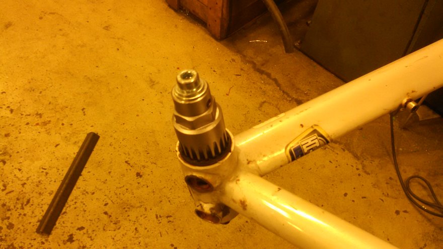 Tänään takeroitiin kampikeskiökelkka ja tehtiin tilapäinen 28,6 mm putki pullistamalla 27 mm putkea. ![]()