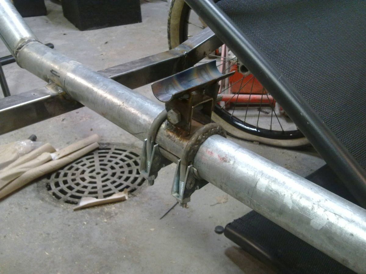 vanha kuva, mutta tuosta näkyy miten kammet on kiinni. Tuon voi tarvittaessa kääntää ylösalaisin. Muutin hieman loivemmaksi tuota kulmaa rungossa, mutta jo nyt tuntuu paremmalta. Sehän tässä on hienoa kaupallisiin verrattuna että tuota voi leikellä ja muunnella mielinmäärin jos tuntuu mittasuhteet huonoilta. Samaa ei viitsisi tehdä 2500e uuden karhealle nojalle. Penkkiä voi siirrellä edestakaisin haluttaessa, nyt se tuntui jotenkin sopuisalta. Vieläkun keksisi mitä teen takakiinnikkeelle ettei paina selkää. Typerä moka, kun en tajunnut että tuo kangas venyy noin paljon. Kahvat jää toistaseksi noin kun en halua että ottavat reiteen kiinni kääntyessä. Mutta jos tuntuvat huonolta, niitä on helppo lyhentää. Taidan tehdä suuremmat muutokset runkoon koeajon jälkeen, näkee hieman missä menee.