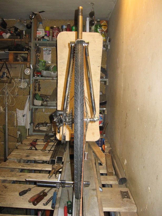 Vuosi sitten keväällä tällä tuli ajeltua joku 150km, ensin penkin takatuet oli pulttaamalla kiinni molemmista päistään, penkin säätämisen helpottamiseksi. Oli kuitenkin liian huteran tuntuinen, tuntui että runko kiertyi aina polkemisen tahtiin.