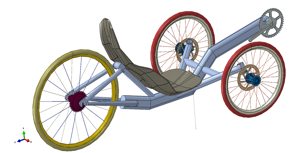Alkuperäinen ajatus oli ostaa jenkkilästä Catrike Speed, mutta EU ja Oy Suomi Ab olisivat halunneet keventää lompakkoani yli 1000 ekellä tekemättä mitään, joten hankinta ei toteutunut. Sen sijaan allekirjoittaneeseen iski toistaiseksi vajaan vuoden kestänyt "mielenhäiriö": "Suunnittelen ja toteutan" moisen laitteen itse. Sen jälkeen on luettu Viebkeä ja muuta aineistoa mitä netistä löytyy sekä tehty lukuisia erilaisia variaatioita. Kuvan versio lienee arviolta 20. tai jotain sinnepäin. Pari lähtökohtaa poikkeavat useimmista kaupallisista tuotteista, joka on lähinnä tuottanut vain ongelmia ja kaikki päähän pölähtäneet villit ajatukset on syystä tai toisesta torpedoitu prosessin aikana.
