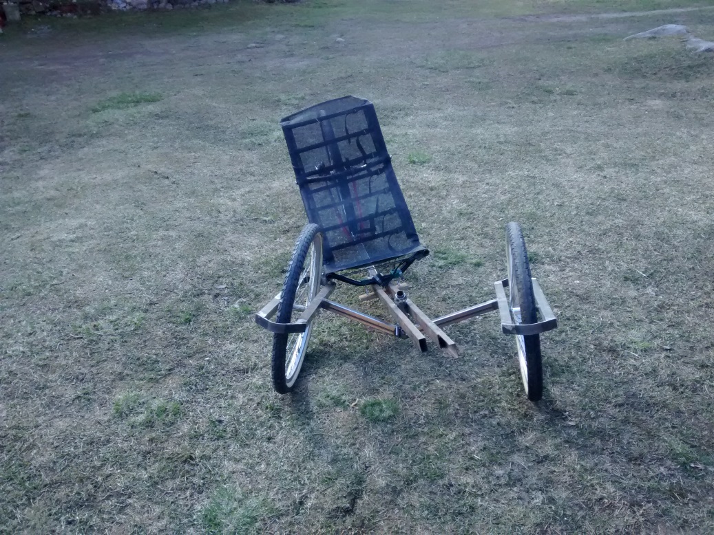 En tosiaan sen paremmin tiedä minkälainen tavarapyörän ohjausgeometria tarkalleen pitäisi olla, kuvia koittanut katsella ja tällä hetkellä menossa siis toinen versio ohjausakselin kulmasta ja siainnista akseliin nähden.
