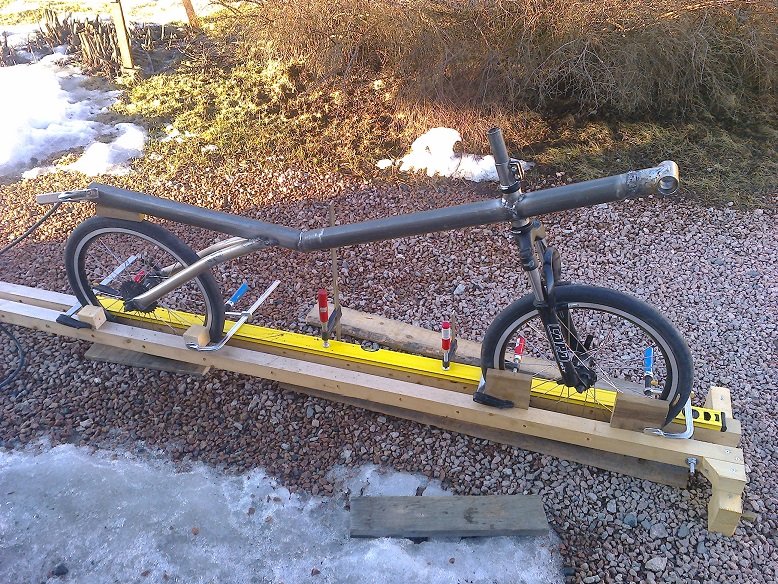 Matalamman olisin tehnyt mutta halusin jäykän rungon ja tietysti yksinkertaisen rakentaa. Matalaan olisi tullut monenmoista mutkaa ja etuveto vaatis omat askartelunsa. Eikä toimi ilman ketjunkiristäjää. Nyt ei oo mig hitsiä käytössä joten puikolla pitää räkiä. En edes muistanu miten vaikee täyttää sauma jos tulee reikä