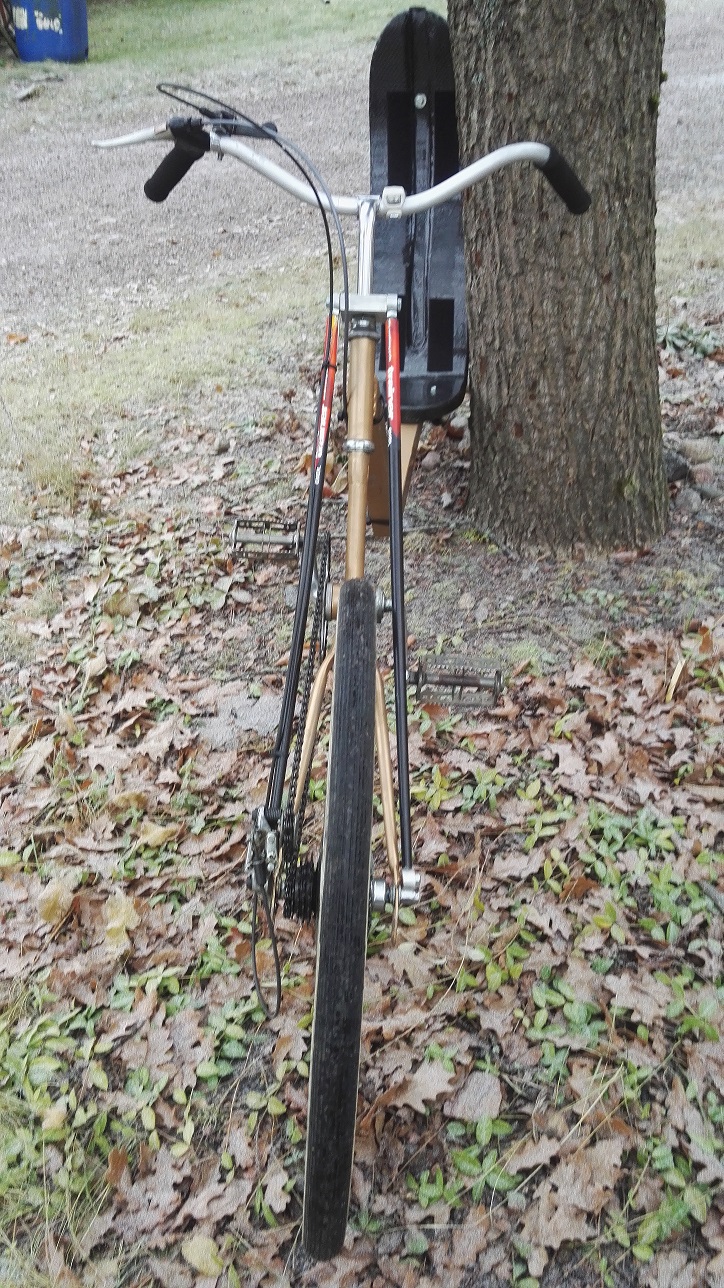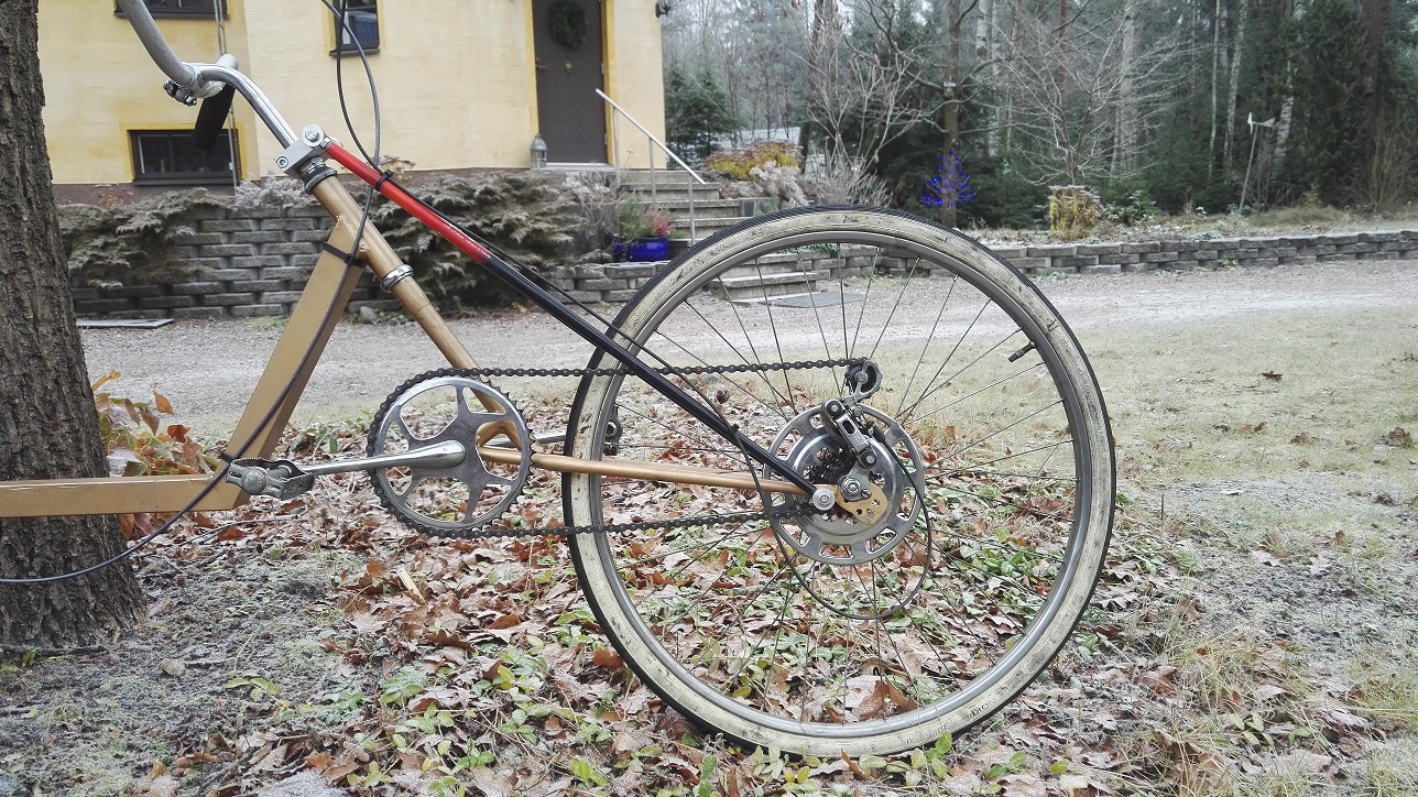 Onhan noita etuvetonojakkeja nykyään runsaasitkin, kun kiertyväketjuisen lisäksi on noita ohjauksen mukana liikkuvalla kampikeskiöllä (MBB) tehtyjä pyöriä, pythonista lähtien. Takavetoinen taitaa nykyisin olla itse tehdyissä harvinaisempi kuin etuvetoinen.
