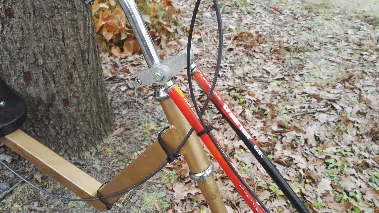 Tuo alumiinipalikka toimii samalla puristimena ohjaustangon kiinnitykseen.