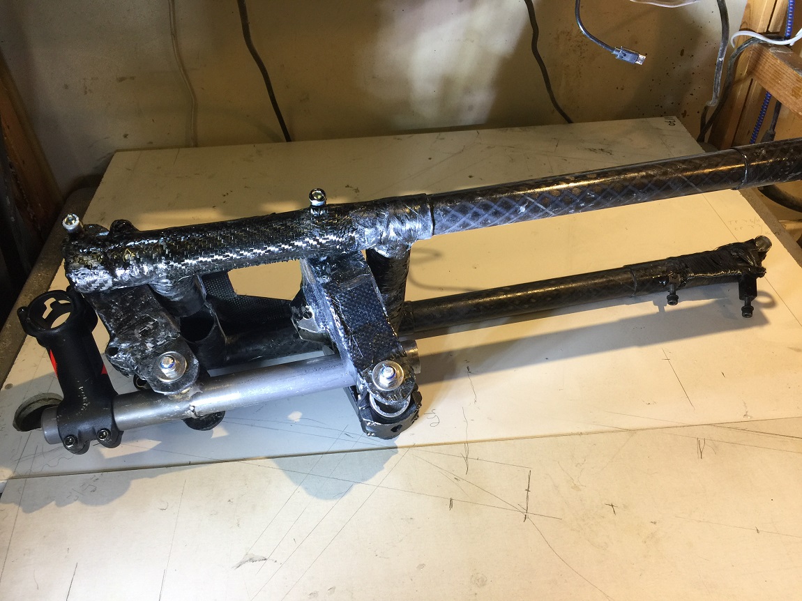 Hei, olen miettinyt että voisi yrittää tehdä joustoetuhaarukkaa itse. Hiilikuituputkea on vieläkin autotallin nurkassa, epoksia ja hiilikuitulankaa sekä kangasta on myös jo valmiina. Lisäksi olisi ylimääräinen 190/50 nelitoiminen takahaarukkaan tarkoitettu ilmajousi. Metalliosat saisin kasaan kovajuotoksella ja hitsaillen (=räkien ja siistimmäksi hioen).