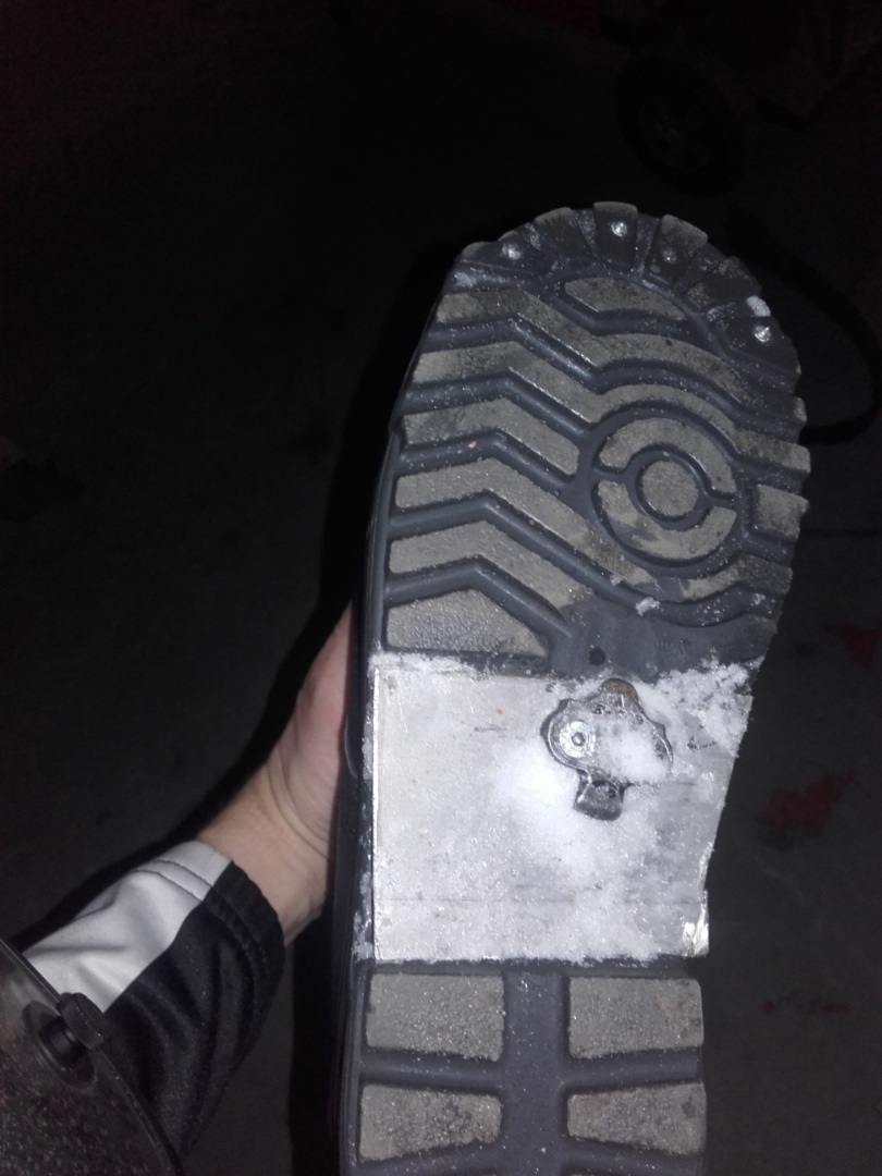 Tuossa kuvassa oleva rautalätkä on sopivan kokoinen, toiseen kenkään tuli sentin lyhyempi ja klossi on ihan raudan reunassa. Kun kengillä oli päivän polkenut niin klossi ja rauta oli painunut kengänpohjaan ja klossia ei saanut enään polkimeen kiinni. Piti vähän vuolla kengänpohjaa lisää.