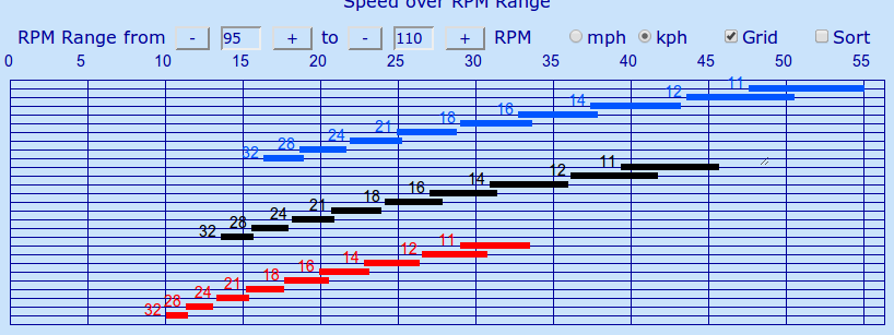 25/34 vaikuttaa hyvältä kompromissilla, 20/30/40 antaa vain yhden pienemmän vaihteen ja 25/34/41 suurin lehti vain 10 km/h lisää vauhtia. Molemmissa jälkimmäisissä menee suurin osa vaihteista täysin limittäin.