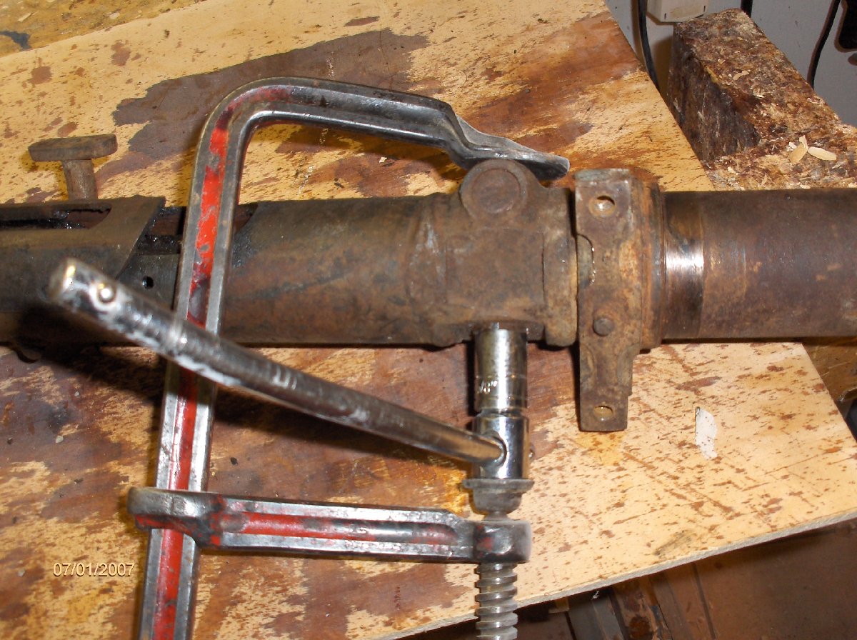 Ehkä itsestään selvää, mutta muista, että toisella puolella on vääränkätiset kierteet ja kun on vanha runko, niin saattaa olla TIUKASSA. Yksi tapa, jolla saa voimaa irroitukseen on tämä: työkalu kiinni ruuvipenkkiin, runko päälle ja vääntöä itse rungosta (kiertosuunta funtsittava huolella).