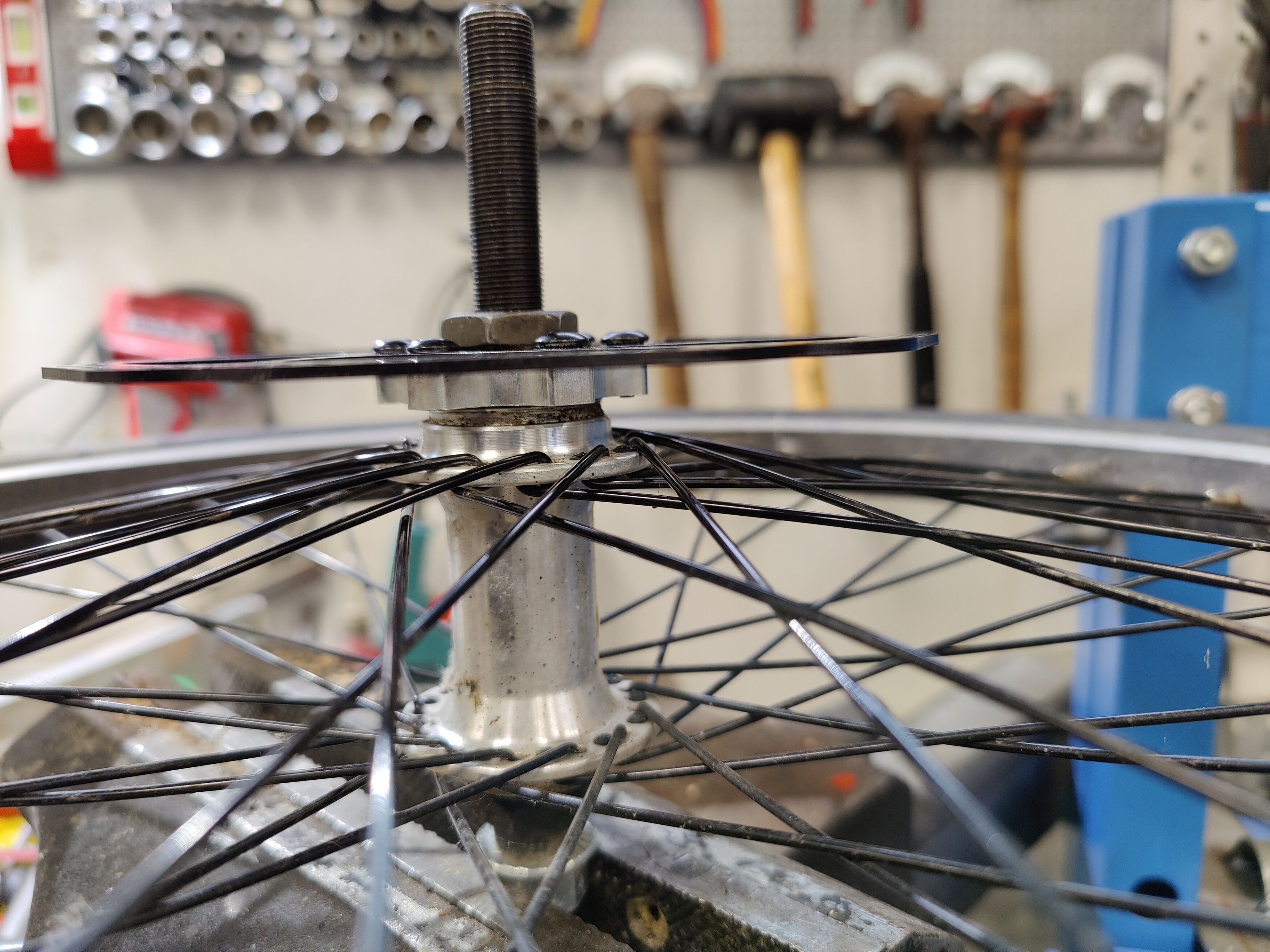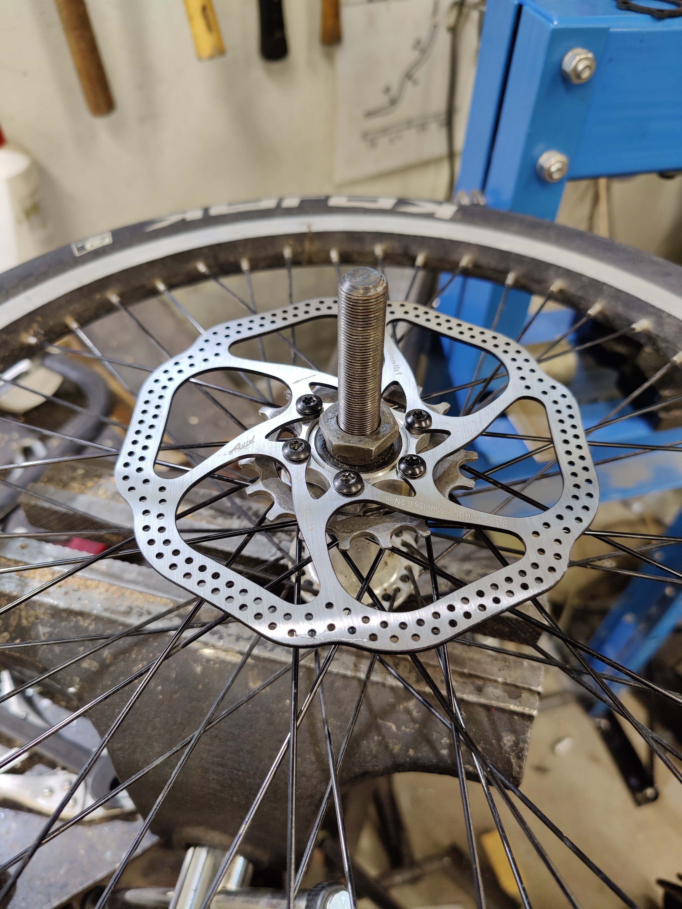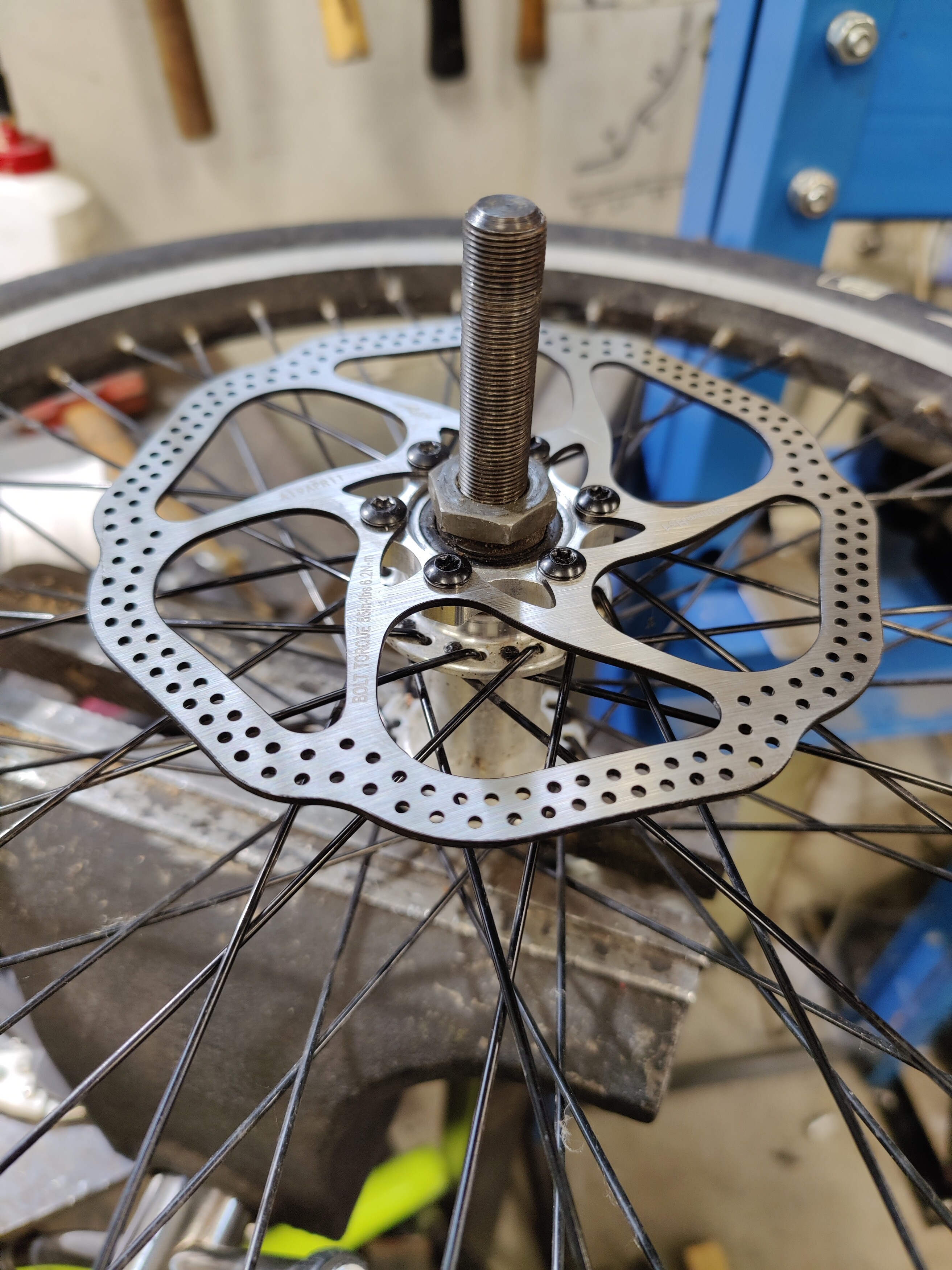 Bmx kiekon vapaarattaan kierteeseen jarrulevyadapteri (80 senttiä/kpl) suoraan chinasta. Jarrulevy otti kuitenkin kierteeseen, jolloin adapteri ei mennyt pohjaan saakka.