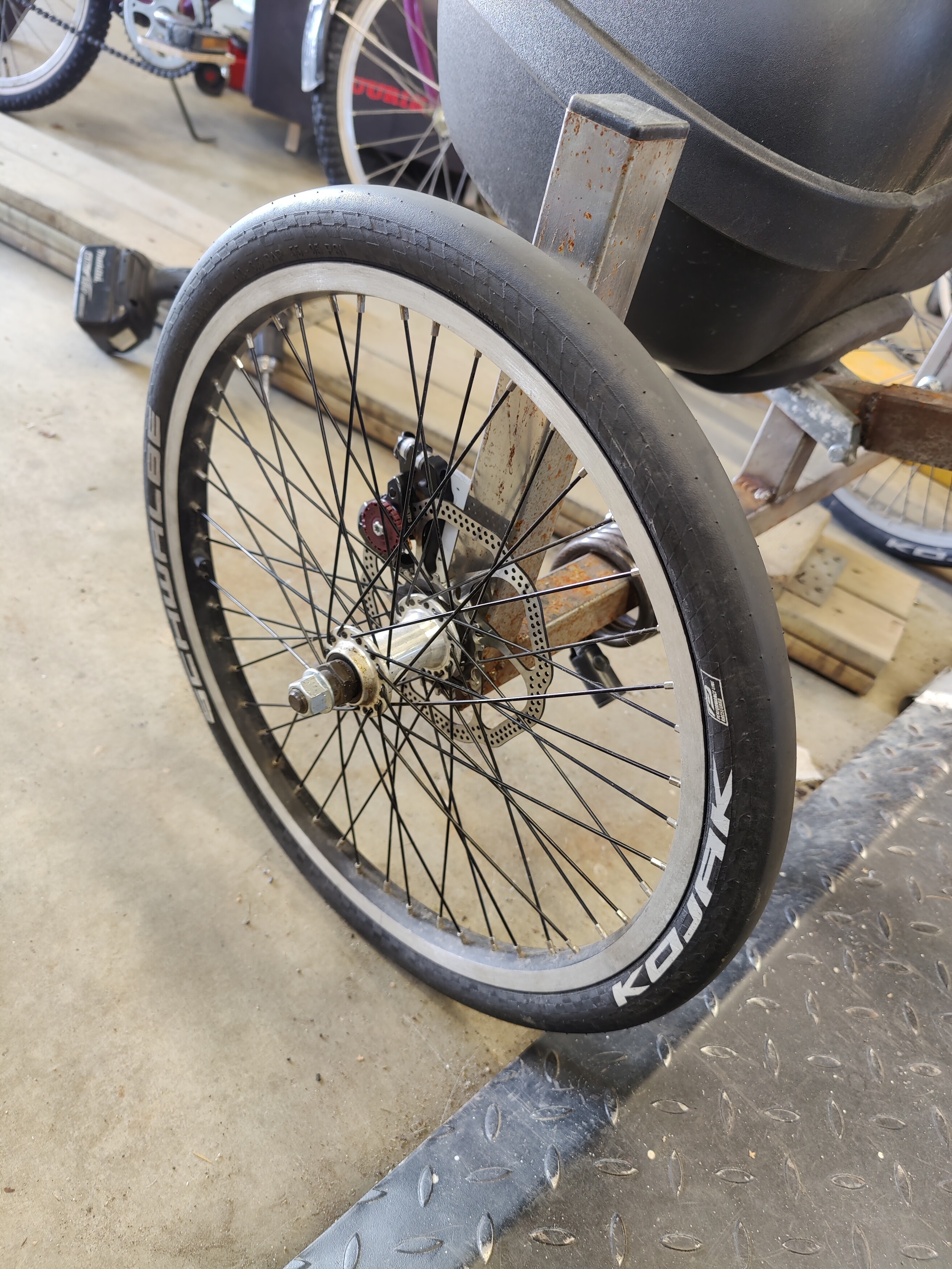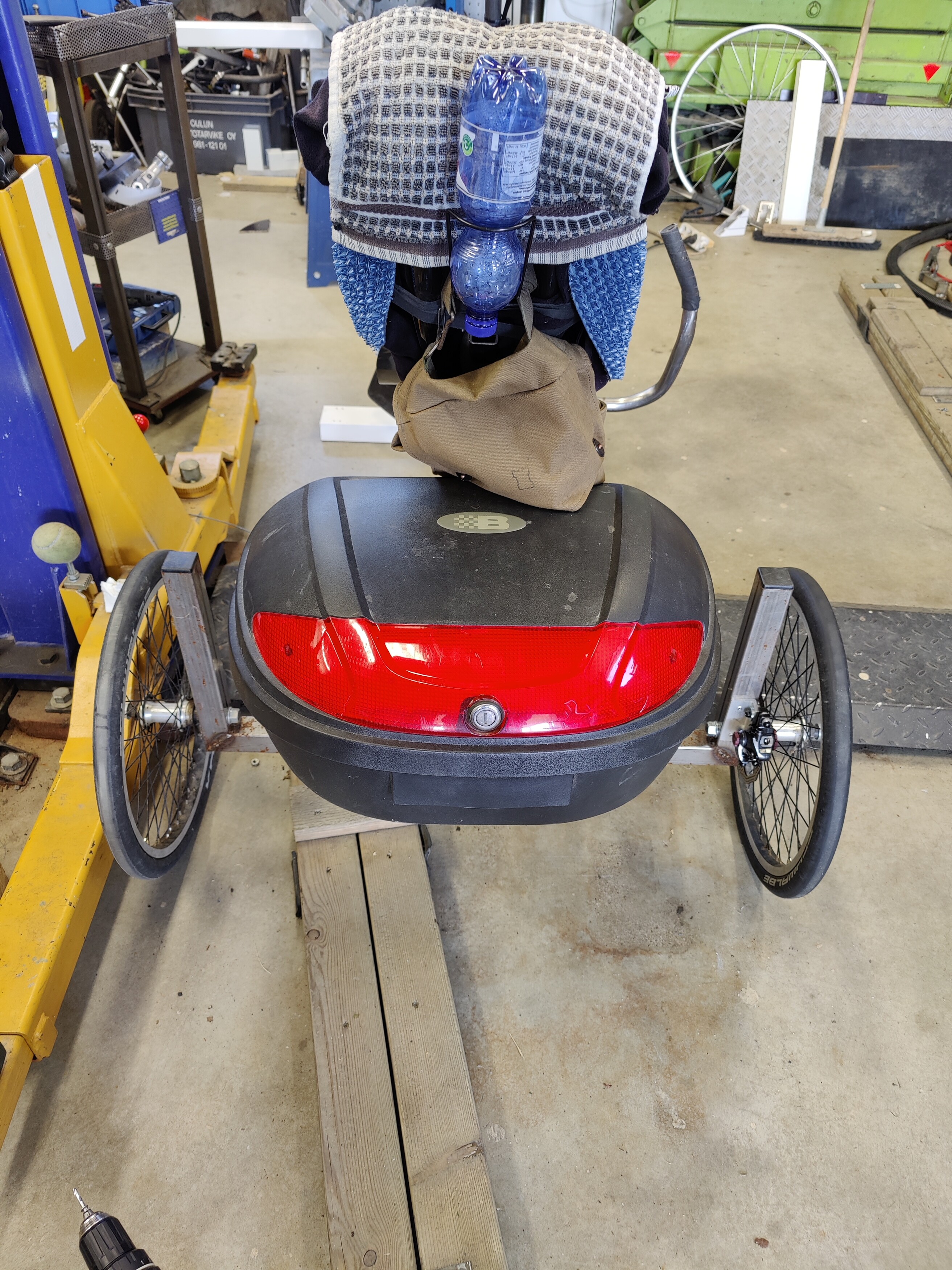 Trikeperä taas syksyn tullen paikoilleen. Oikealla puolella ois nyt jarru, vaijeria vielä huutelee.