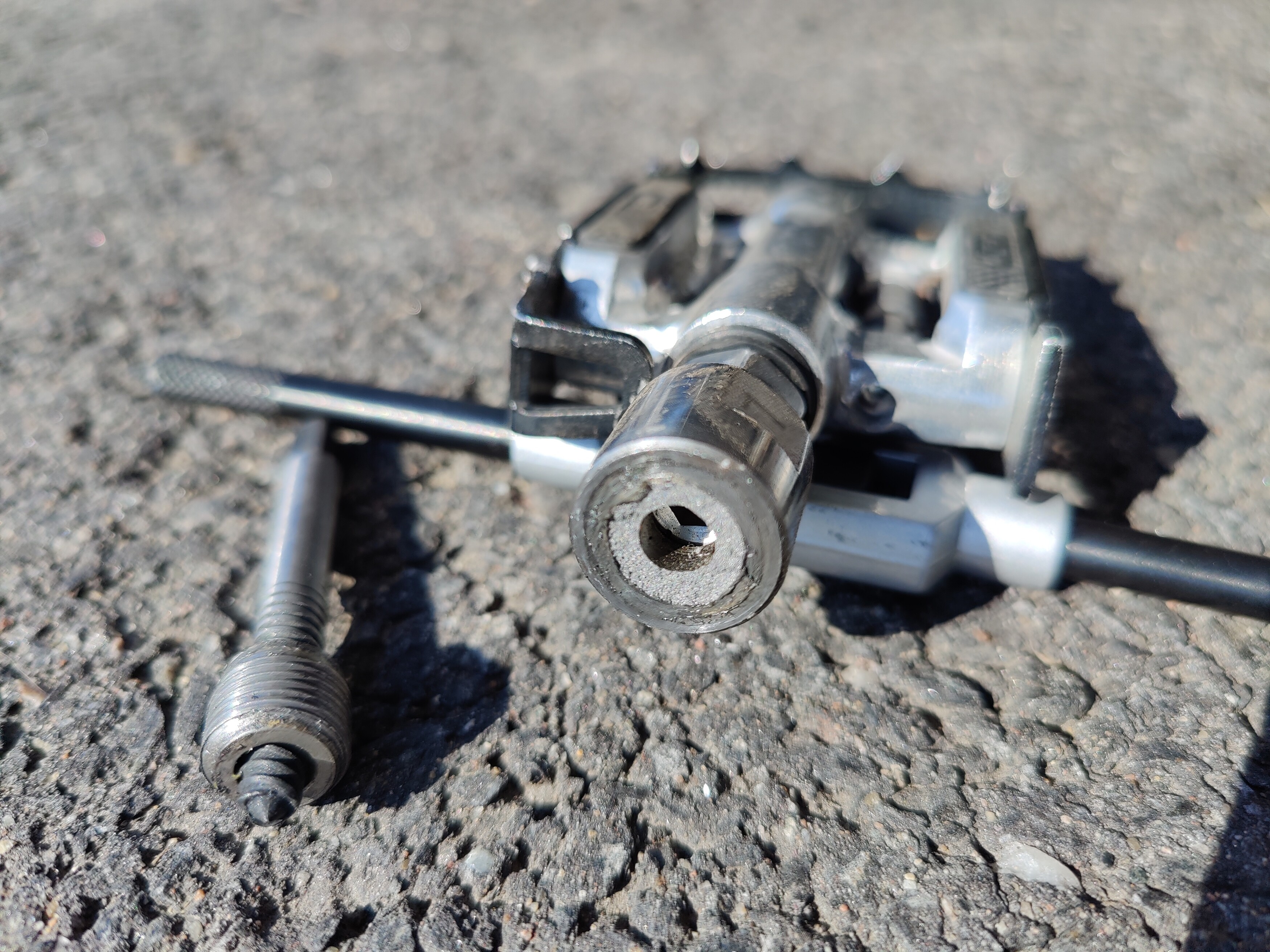 Hyvin lähti kevään ensimmäinen nojapyörälenkki. Eka polkaisulla kuului naps ja poljin lensi kymmenen metrin päähän. Special Biken myymä pedal extender on ensinnäkin ontto ja toiseksi jotain höpöhöpö valumateriaalia.