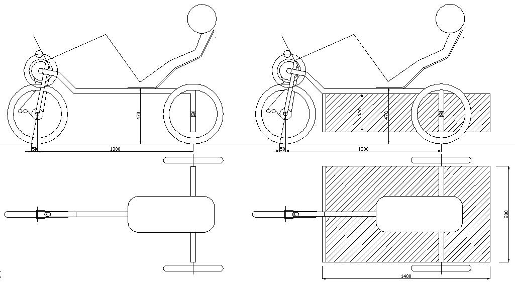 Tuo mun piirtämä pyörä näyttää korkealta ja kiikkerältä, mutta se on kettwieseliä tukevampi. Istuin samalla korkeudella, samalla etäisyydellä taka-akselista, mutta akseli on hieman leveämpi. Vetopito riittää varmasti kuorman kanssa, mutta tyhjänä suunnilleen jatketulla eturungolla olevan flevon tasolla. Pärjäsi silläkin, ainakin täällä tasamaalla :wink:
