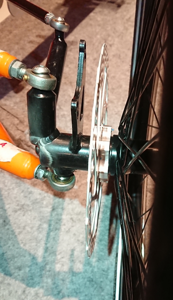 Jarrulevyn kiinnikkeeseen täytyy tehdä väliprikka, kun jarrulevyn kanssa ei saa ruvattua perille asti. Noiden kiinnikkeiden kiinnitys täytyy miettiä, joko pelkästään kierrelukitteella tai lisäksi ehkä vielä lukitusruuvit. Ainakin sille puolelle, joka aukeaa jarrutuksessa.