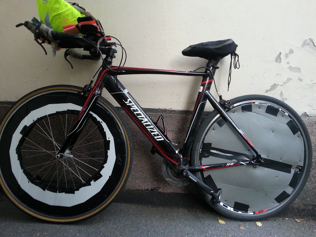 Nojapyörän haarukoissa on kyllä reiät lokarin kiinnittämiseksi, mikset käyttäisi niitä. Kilpapystärissä ei ehkä niitä reikiä ole, muttei mahdu ängesevääkään asentamaan, jos on aikeissa joskusta käntää etupyörää. Jos ajaa vain suoraan, mahtuu ängesevä poljinkampien väliin. Täytyy varmaan tehdä nostokäännös sitten jos pitää u-käännöstä joskus harkita. :wink: