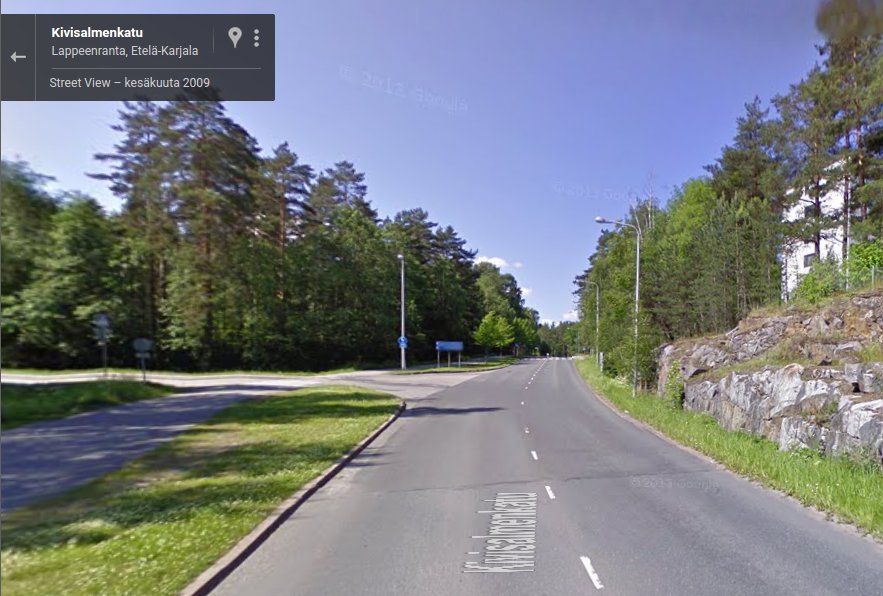 Ajoin aamulla vähän eri reittiä töihin, eli tulin työpaikalle eri suunnasta, kuin normaalisti. Alla kuva työpaikan risteyksestä. Kinneri maamerkkinä. Tulin siis takana näkyvää tietä oikealta risteykseen ja käännyin teollisuusalueen tielle, josta kääntyy heti oikealle meidän firman pihaan. Normaalisti tulen toisesta suunnasta ja pyörätietä pitkin, jolloin ylitän takana näkyvän tien. Nyt, kun tulin autokaistalla, niin vauhtia oli hieman normaalia enemmän, kun ei tarvinut odottaa, että pääsee tien yli.