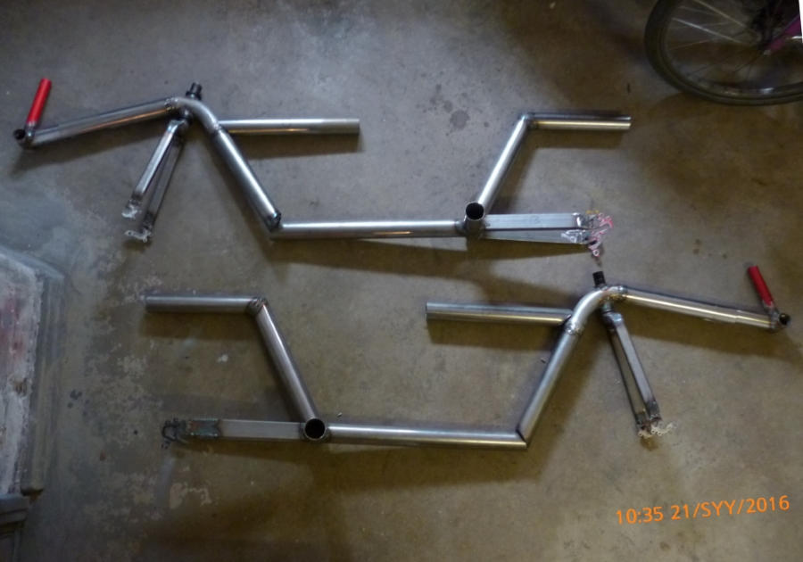 Nelihenkinen riksa SH30 on tällaisessa vaiheessa. Lattialla olevat selkänojat odottavat kansalaisopiston alkua, että pääsen hitsaamaan niiden tukirautoja.