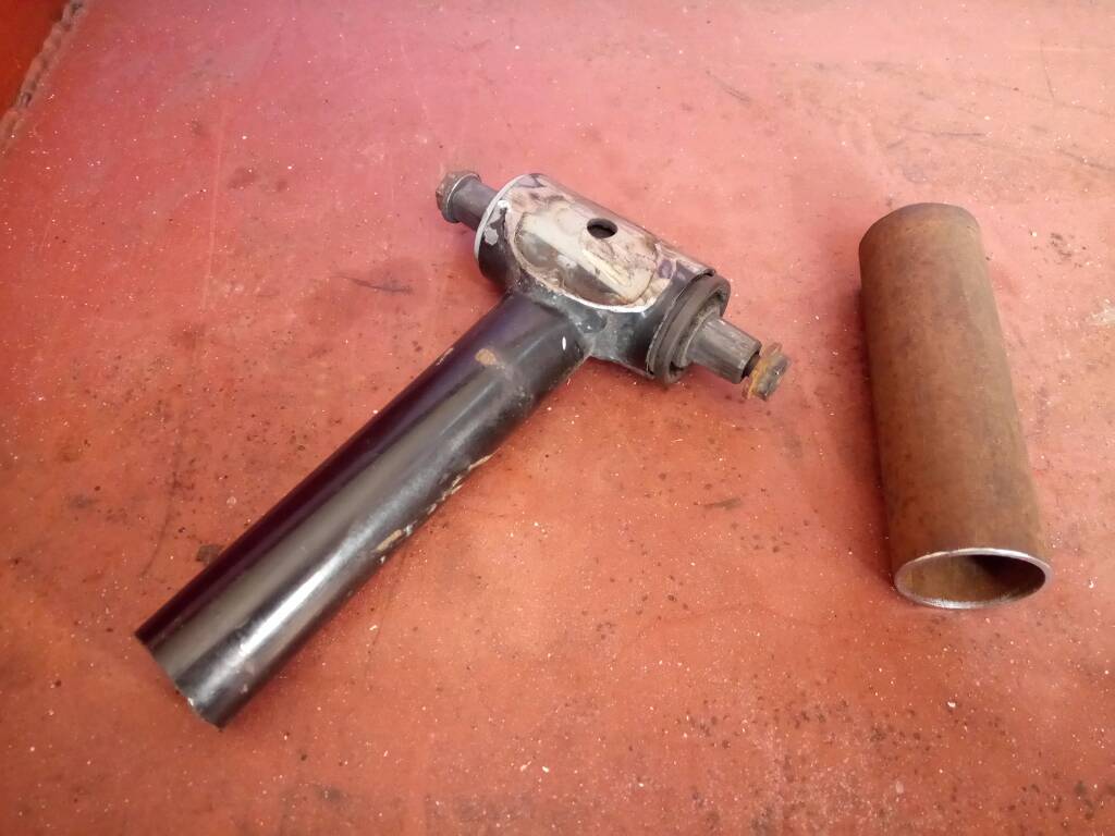Tästä se lähtee. Emäputki katkaistu ja runkoromuista irroitin kampikeskiön