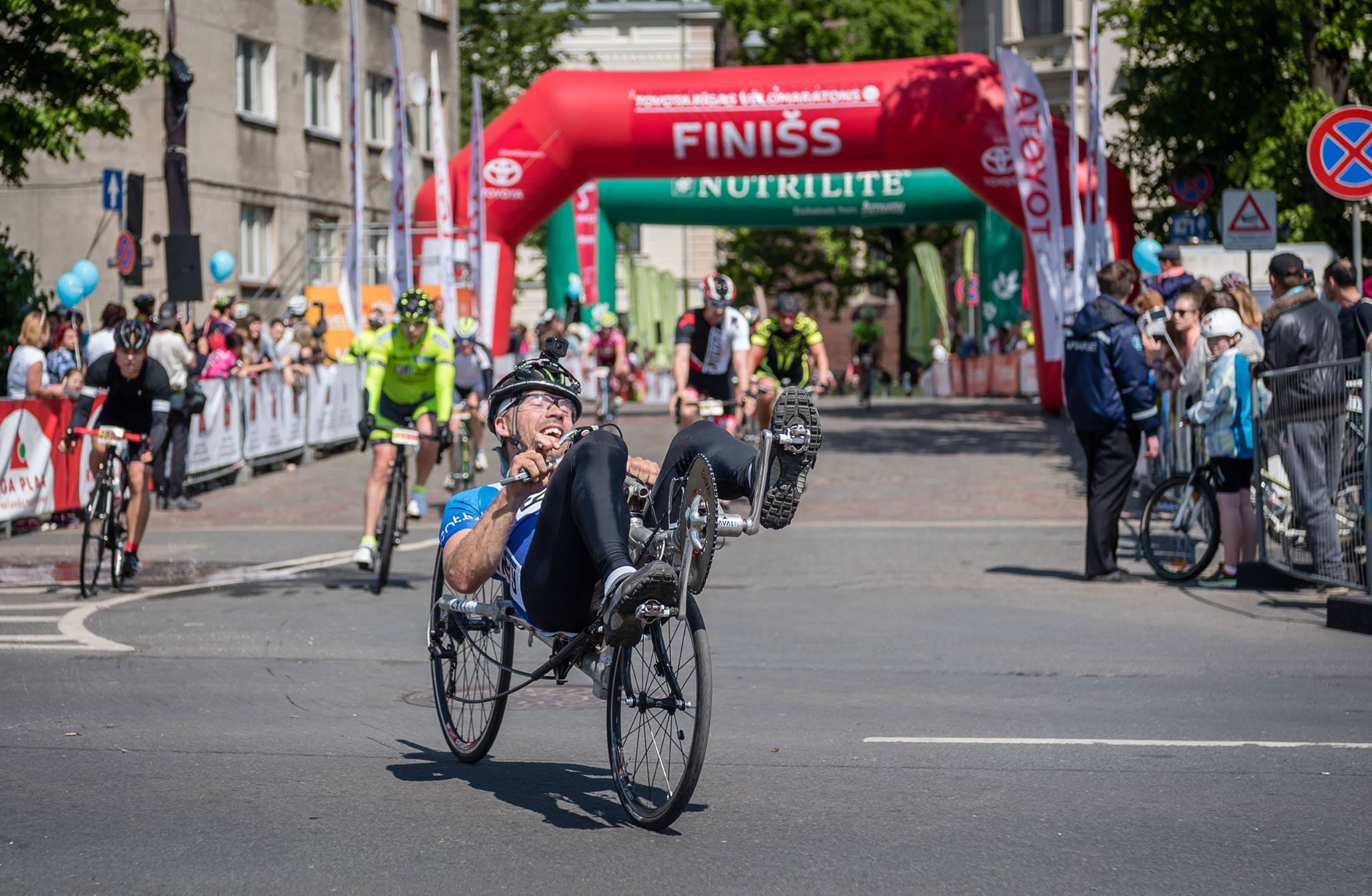 Just for fun, my friend Reinis has fun riding on a low racer recumbent the usual bike race