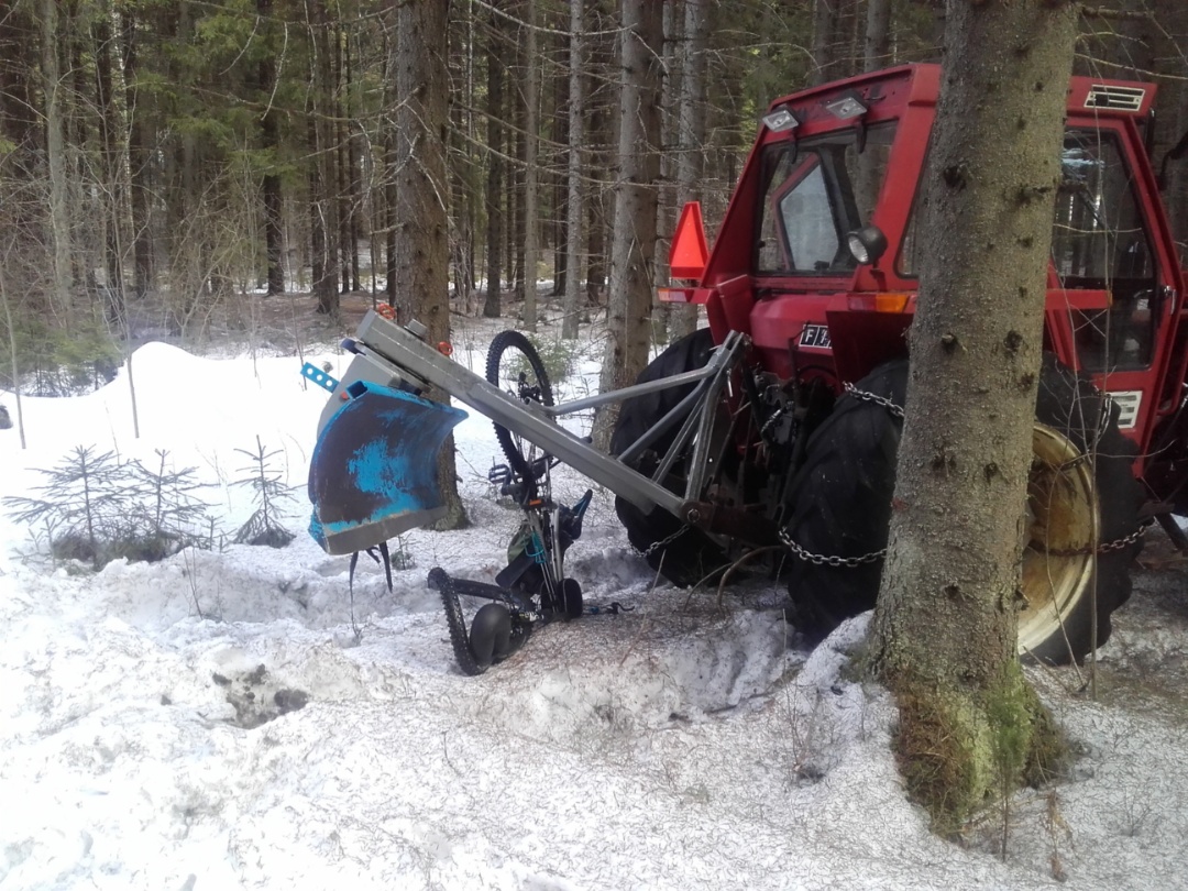Varkaat siis vei meidän raktorin ja tämä pyörä oli lukolla siinä kiinni ja niistivät ton keulan.
