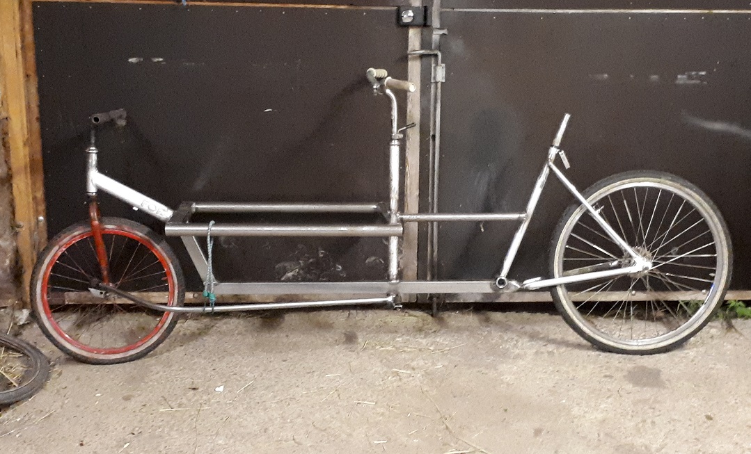En malttanutkaan enää, pikaisesti kävin pyörittelemässä. Voi sanoa että ajettava se on. Kääntösäde on iso, kuten arvelinkin. Vähän pitää etuhaarukan vipua muokata että saa lisää tilaa etupyörälle. Kuvassa näkyvän haarukan kiinnityskorvakkeen pidennys myös muuttaa ohjauksen vipusuhdetta, suurentaa sarvien liikettä. Nyt tuntui liian äkäiseltä.