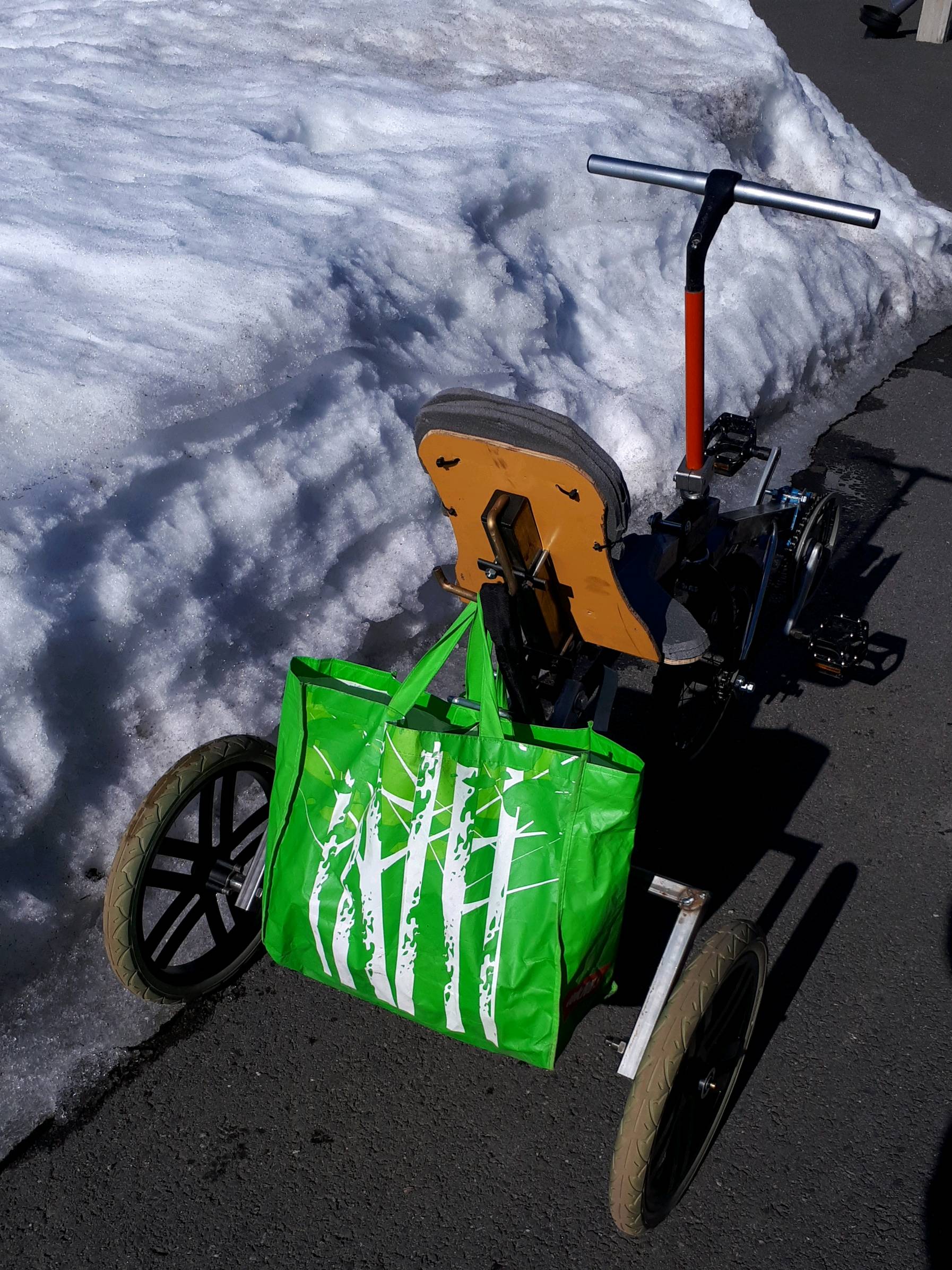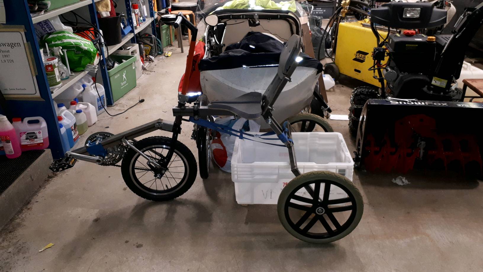Olisiko mahdollista saada ajovideota. Jos tuo on mukava ja stabiili ajettava, noille voisi olla markkinoita. Laiskimmille vielä sähköavusteinen etupyörä. 8)