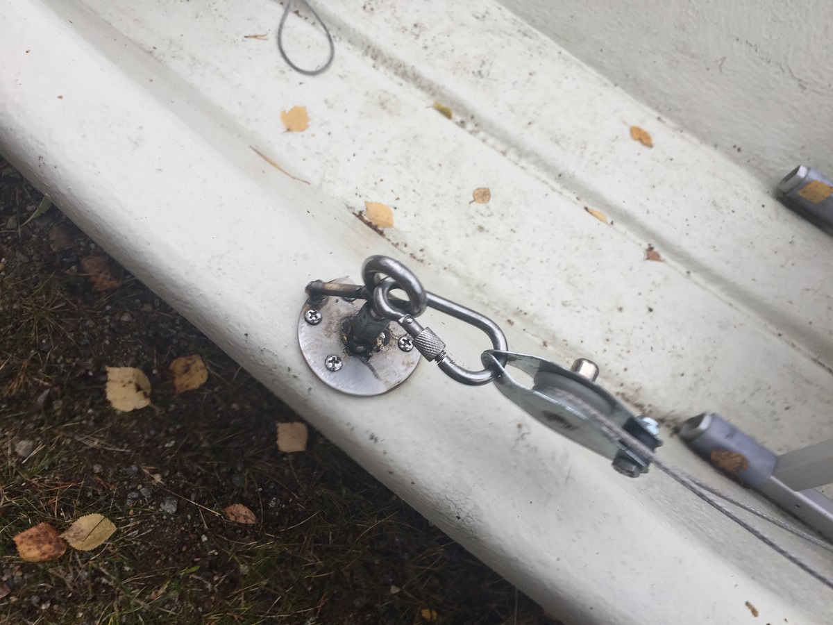 Virittelin aluksi sydeemin aivan tavalliseen soutuveneeseen (Päijän vene) jossa narut kulki keskipenkin vesireikien kautta ja sen jälkeen oli 30 astetta ohjaava rissapyörä ja varsinainen rissapyörä etuhankaimessa. Toimi noinkin mutta vene oli soutuominaisuuksiltaan kehno ja selvästi hitaampi.