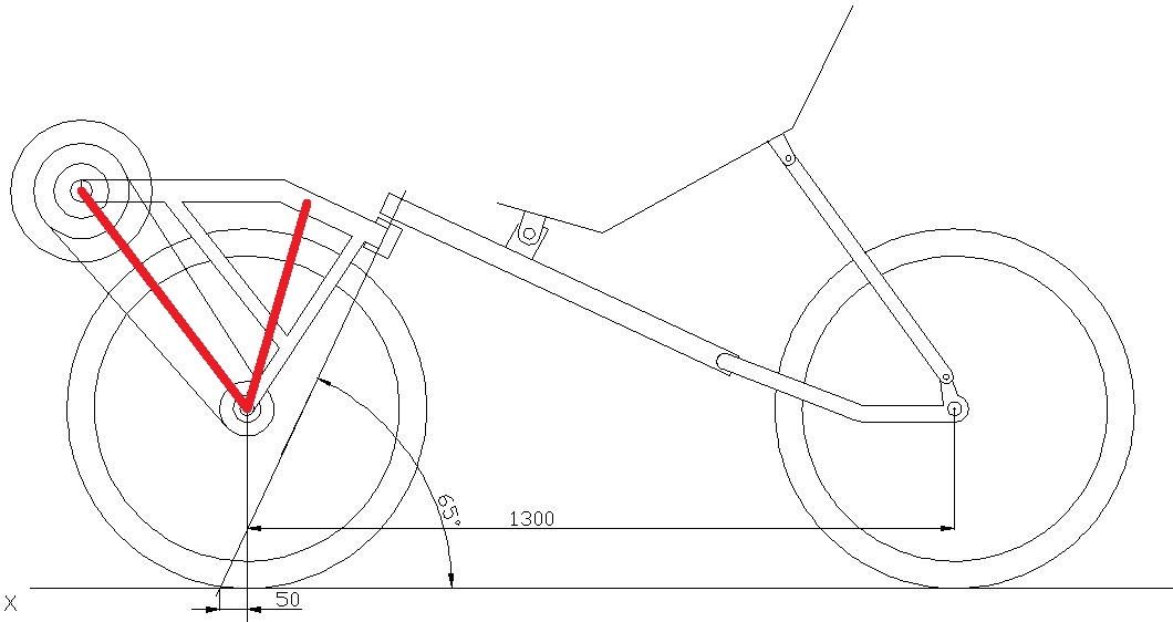 Rear frame spar [ currently to long ] is about 127mm from ground , tilt pivot mounted somewhere on that spar with pivot axis pointing to front wheel contact patch.