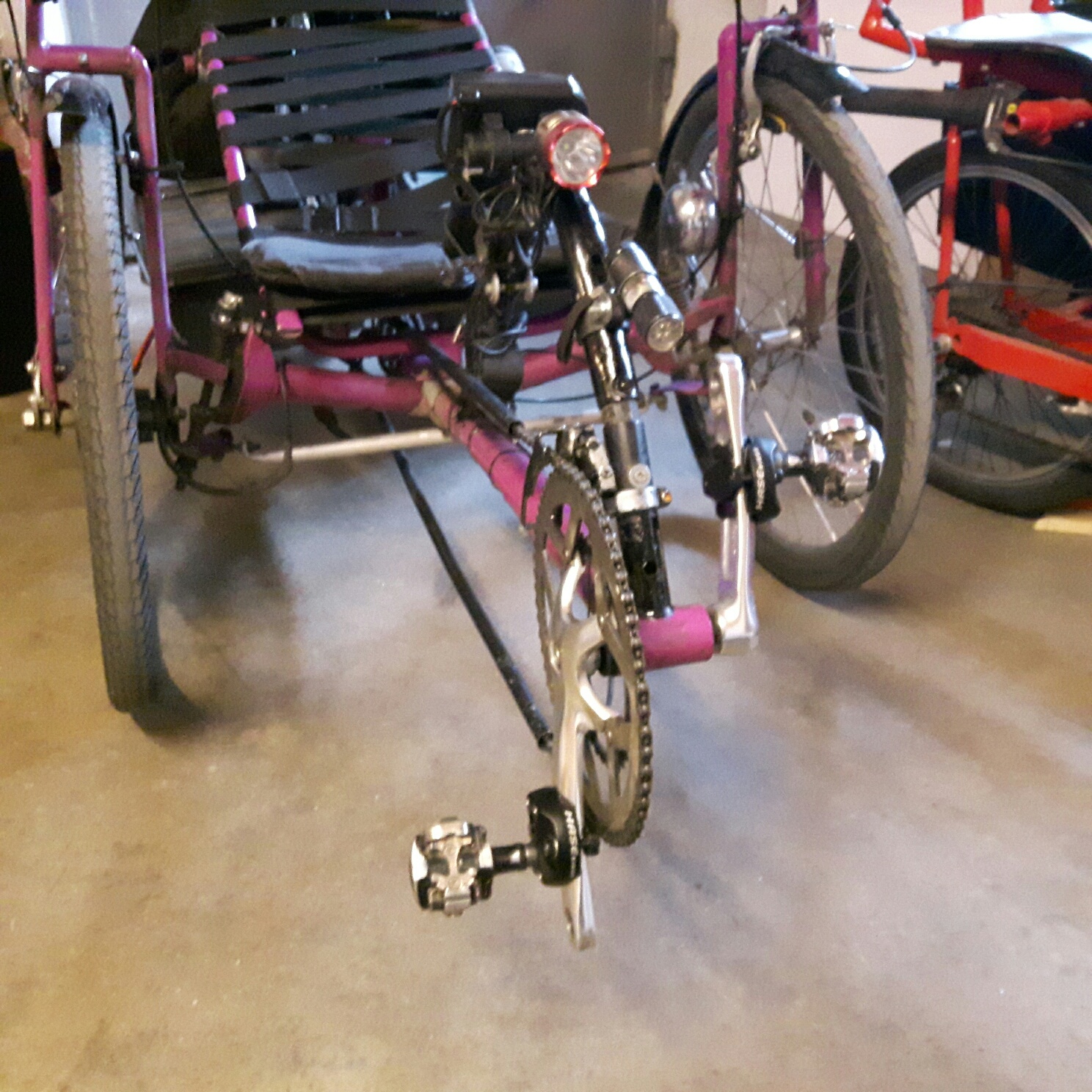 Niin oli noissakin. Kalliimman pään kammet olivat 9/16" poljinkierteillä. Tässä yksi versio 102 mm kammista vähän isommalla eturattaalla ja 9/16" poljinkierteillä: