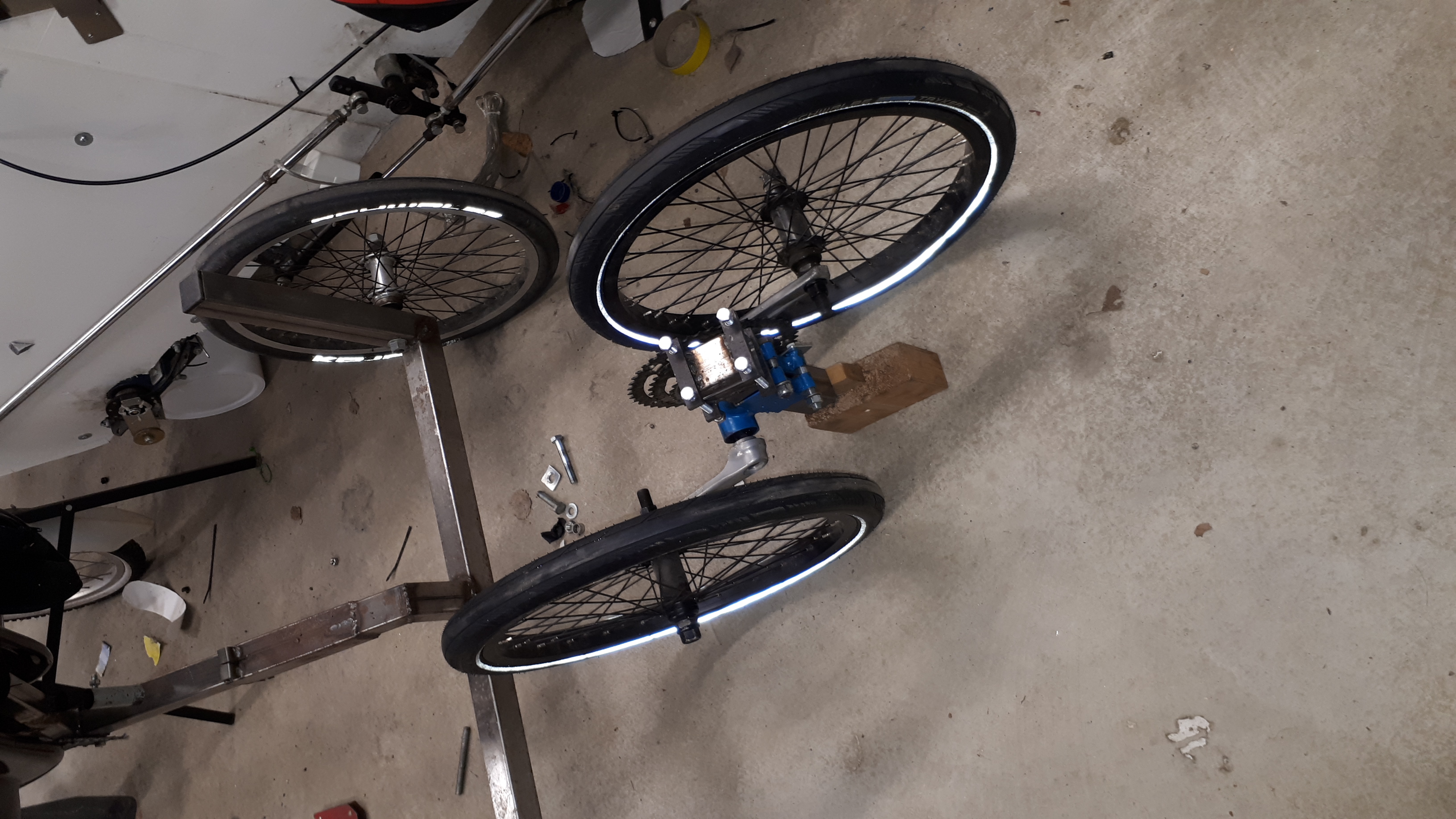 Tarvisin oikeastaan kaksi. Toinen estämään rullaus ja toinen kallistuksen lukitukseen. Jos rakentelis levyjarrusatulan kiinnikkeet ja puristelin ketjuratasta sillä.