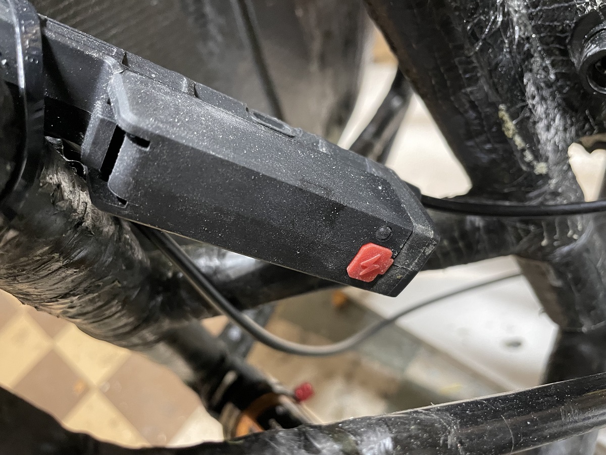 Näppärän näköisesti lyhennetty takavaihtajan häkki. Kuidulla ja epoksilla saa ihmeitä aikaan :) .