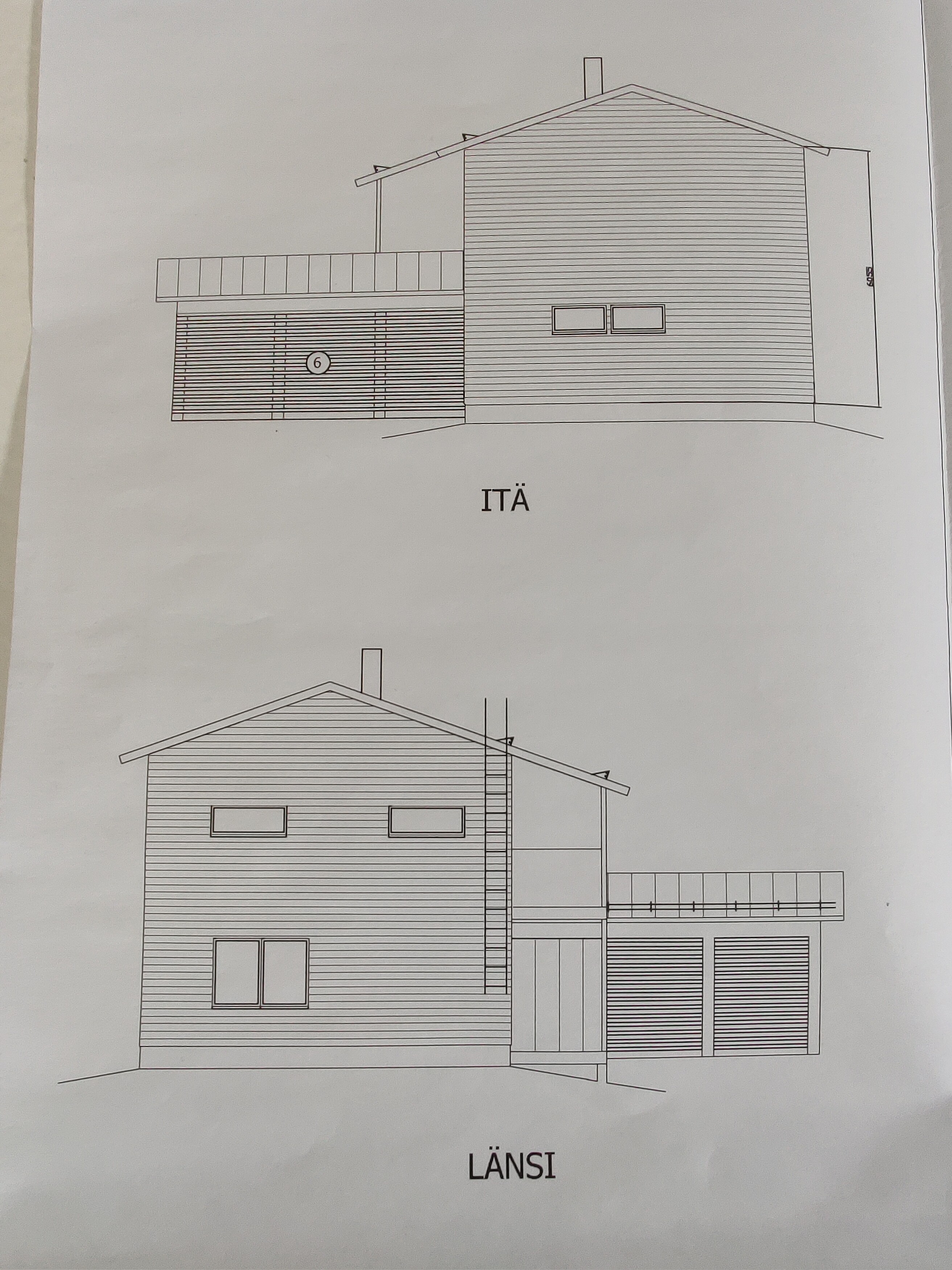 Ulkokuvat. Autokatoksen vaakarimoitus on vieläkin asentamatta ![]()