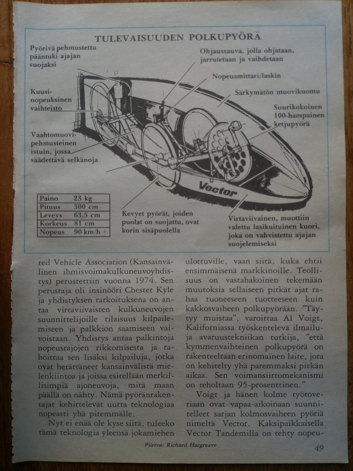 No tuota lehtijutun Vectoria ei kaupasta saanut, mutta tekstissä maalailtiinkin kuvaa tieliikennekelpoisista vehkeistä.