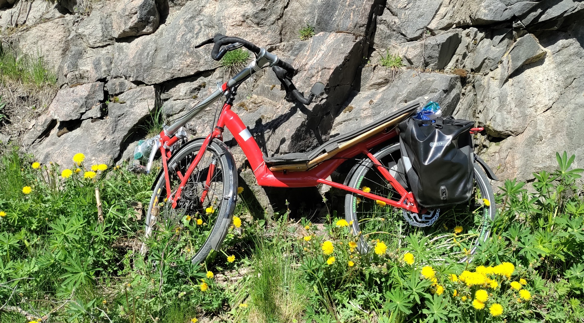 Oli niin kiva valo, että piti ottaa kuva hieman uudistetusta kaupunkipyörästäni. Selkänojaputken alapään liitos väsyi poikki. Korjasin, ja samalla asensin vähän lokoisampaan asentoon. Ilman käsiä ajaminen helpottui radikaalisti.