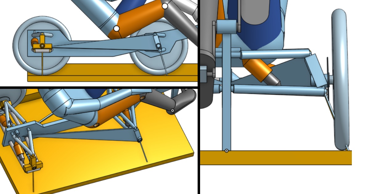 • mihin kiinnittää jouset, jotta jousitus olisi herkkä pienille epätasaisuuksille mutta kiristyisi loppua kohden? Renkaan tukivoiman varren pitäisi lyhentyä ja/tai jousivoiman varren kasvaa.