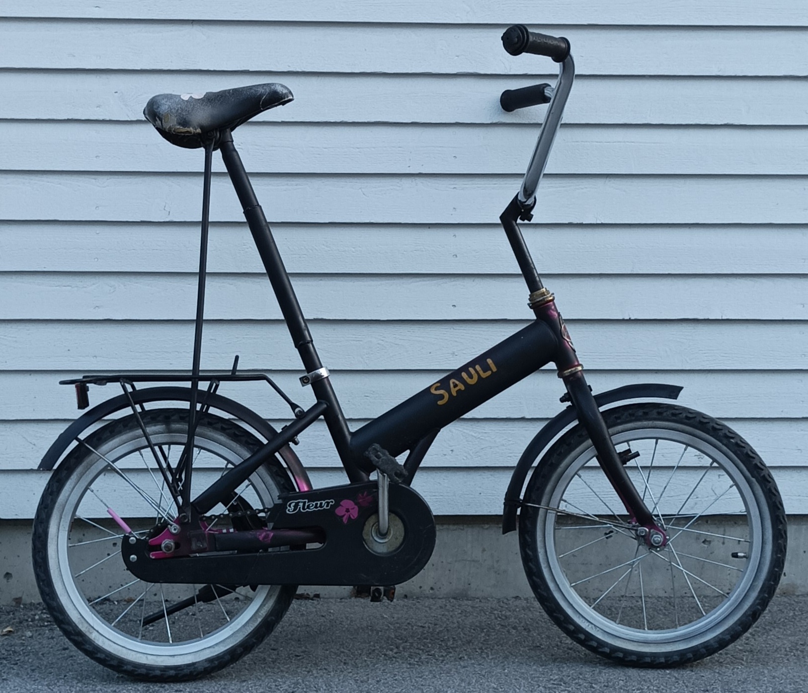 Kohteeksi valokoitui työpaikan romulavalta Nopsa Fleur, 305-renkailla, johon vaihdoin korkeamman tangon ja jatkoin satulaputkea reilusti.