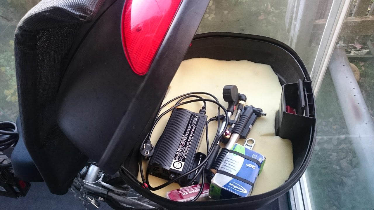 Ajoturvallisuuden kannalta kannattaisi siirtää perälaukku keulaan, koska paino perälaukussa huonontaa painojakaumaa entisestään. Silloin pitäisi tietenkin lisätä laukkuun valkoiset heijastimet etupuolelle.