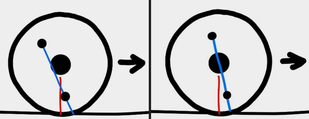 kannattaa tehdä purkin kannesta ja vaikka kynästä yhteen liimaamalla sellainen lelu, jolla tuota probleemaa voi tutkia muuttelemalla casterkulmaa. Sivukallistumahan on liimalla kiinni kiekossa. Aikansa kun pyörittelee alkaa hahmottua noiden kulmien vuorovaikutus ohjaavan pyörän sivukallistumaan.