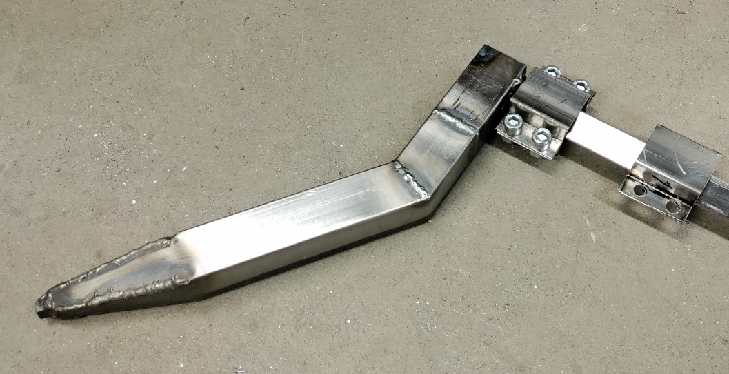 Pientä edistystä olkavarsiin, pallonivelet kohdillaan. Niille on vielä toiset varareiät, jos haluaisi vaihtaa geometriaa, siksi tuo T-muoto. Olkapoikkeamaa tulee nyt pari senttiä negatiiviseen suuntaan ja olka-akselin sivukallistuma on n. 20°.